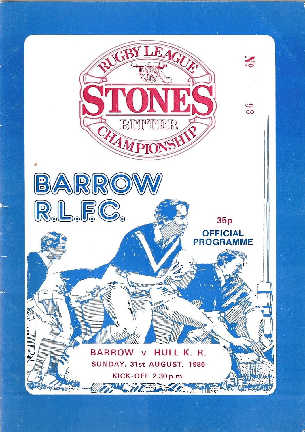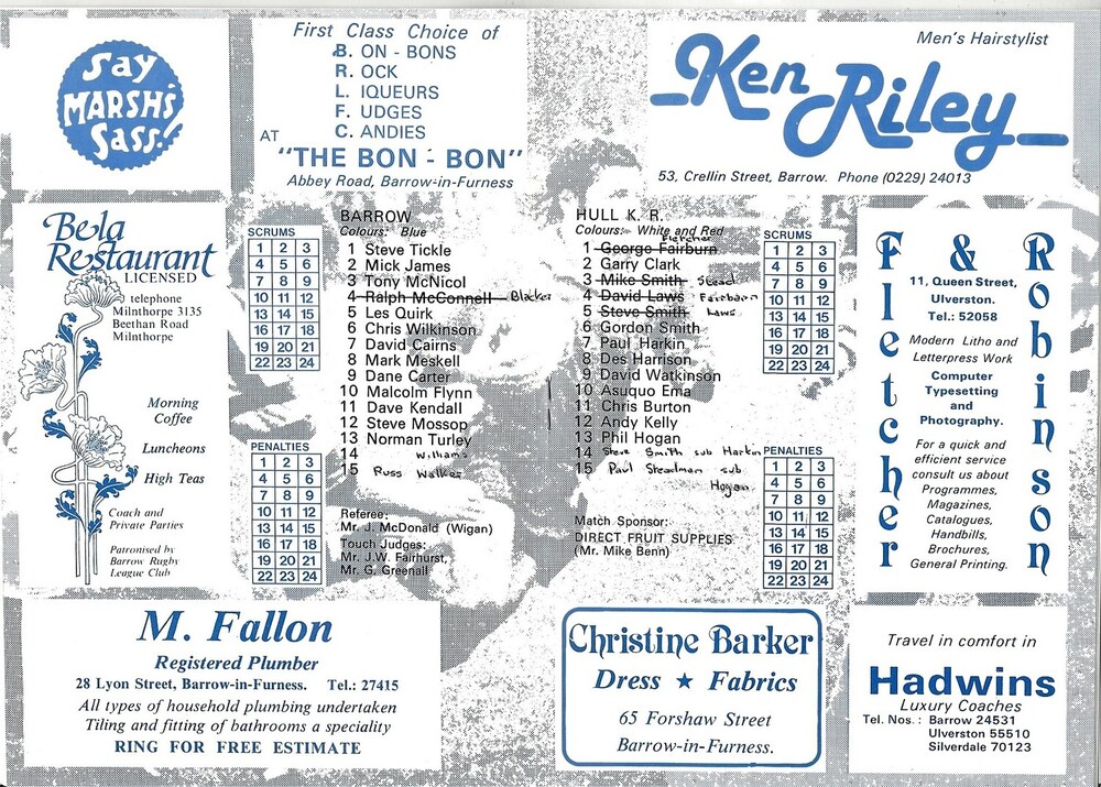 1986/87 Barrow v Hull Kingston Rovers Rugby League Programme