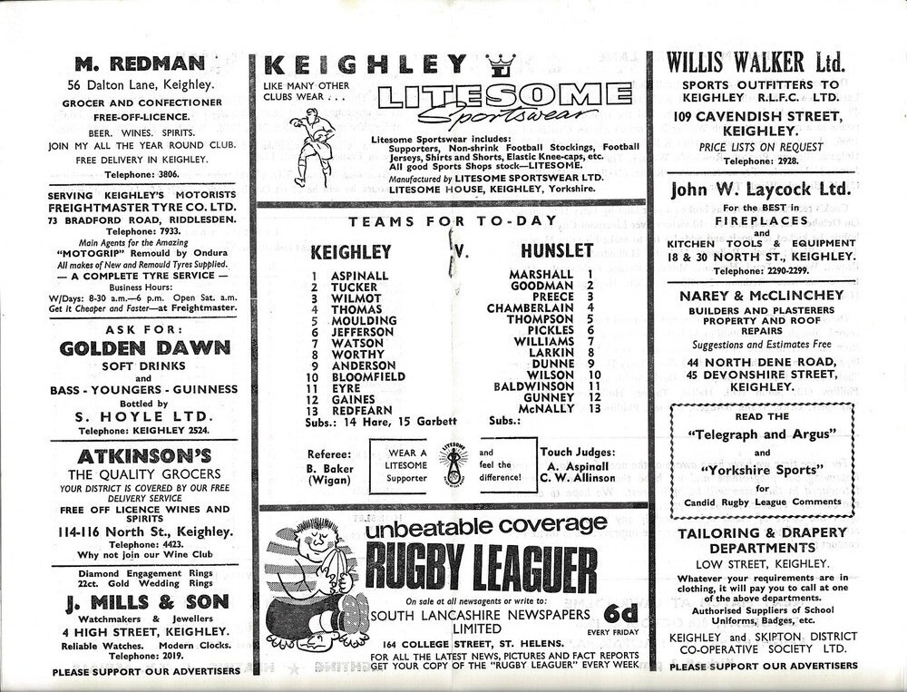 1966/67 Keighley v Hunslet Rugby League programme