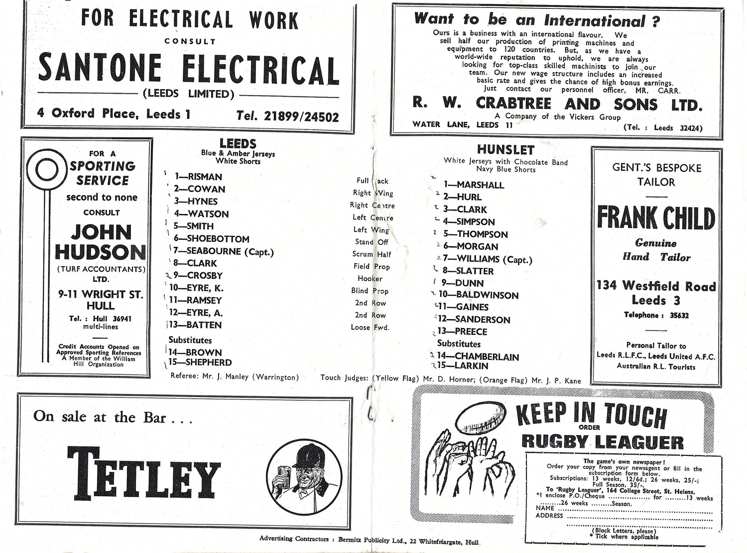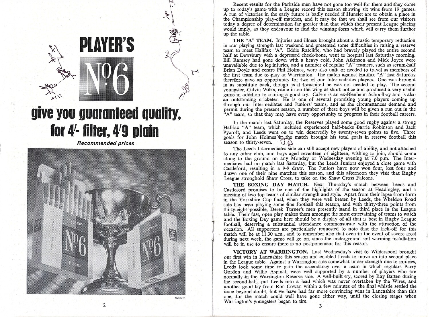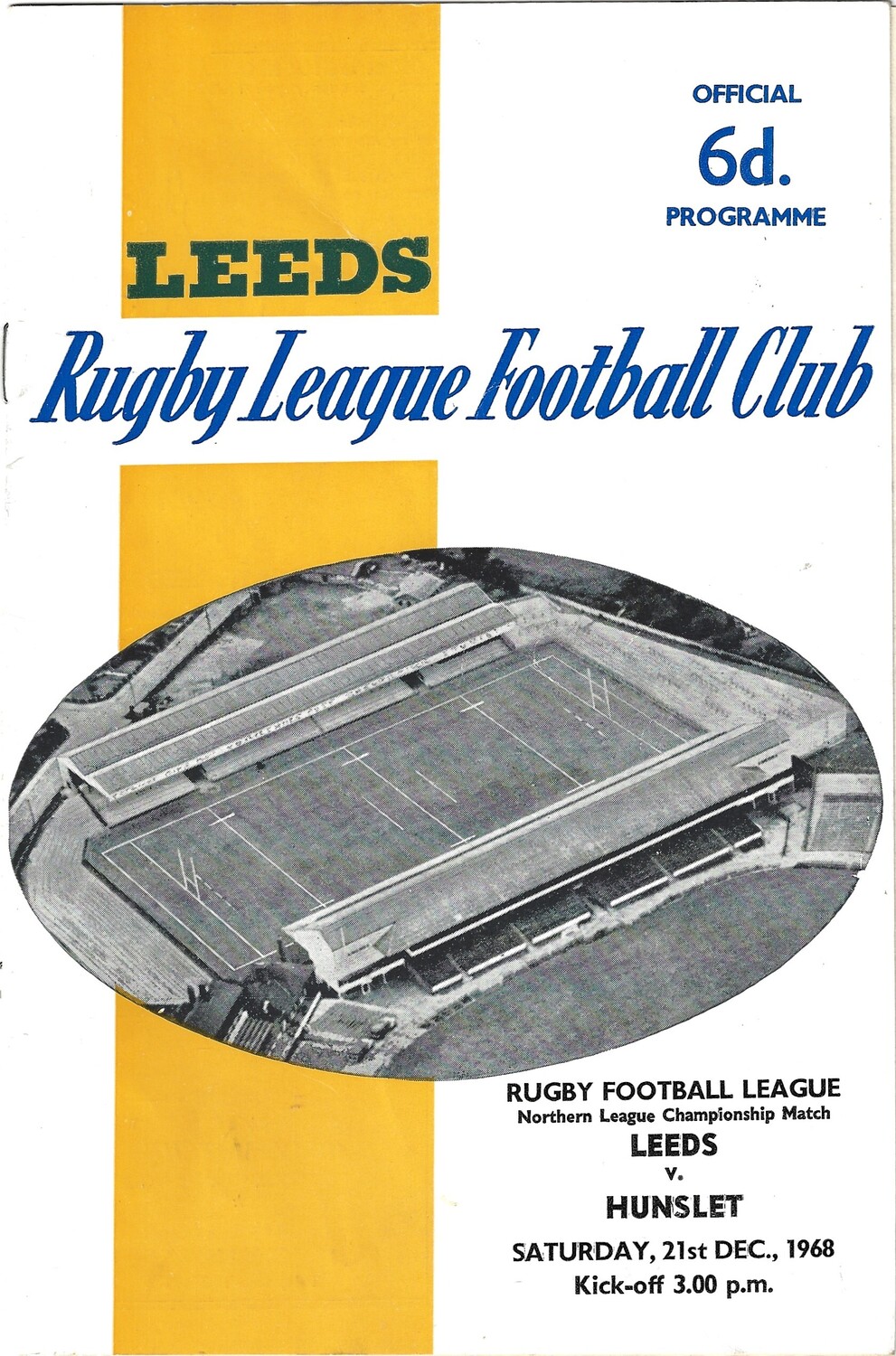 1968/69 Leeds v Hunslet (21/12/1968) Rugby League Programme
