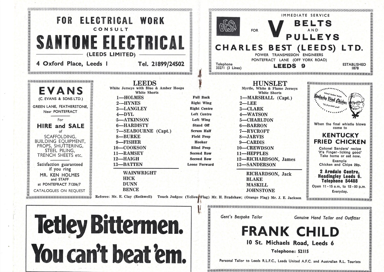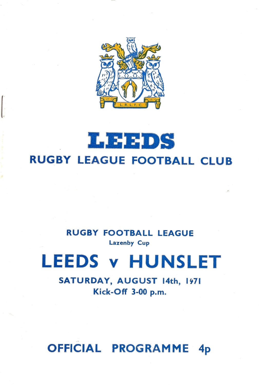 1971/72 Leeds v Hunslet (14/08/1971) Rugby League Programme