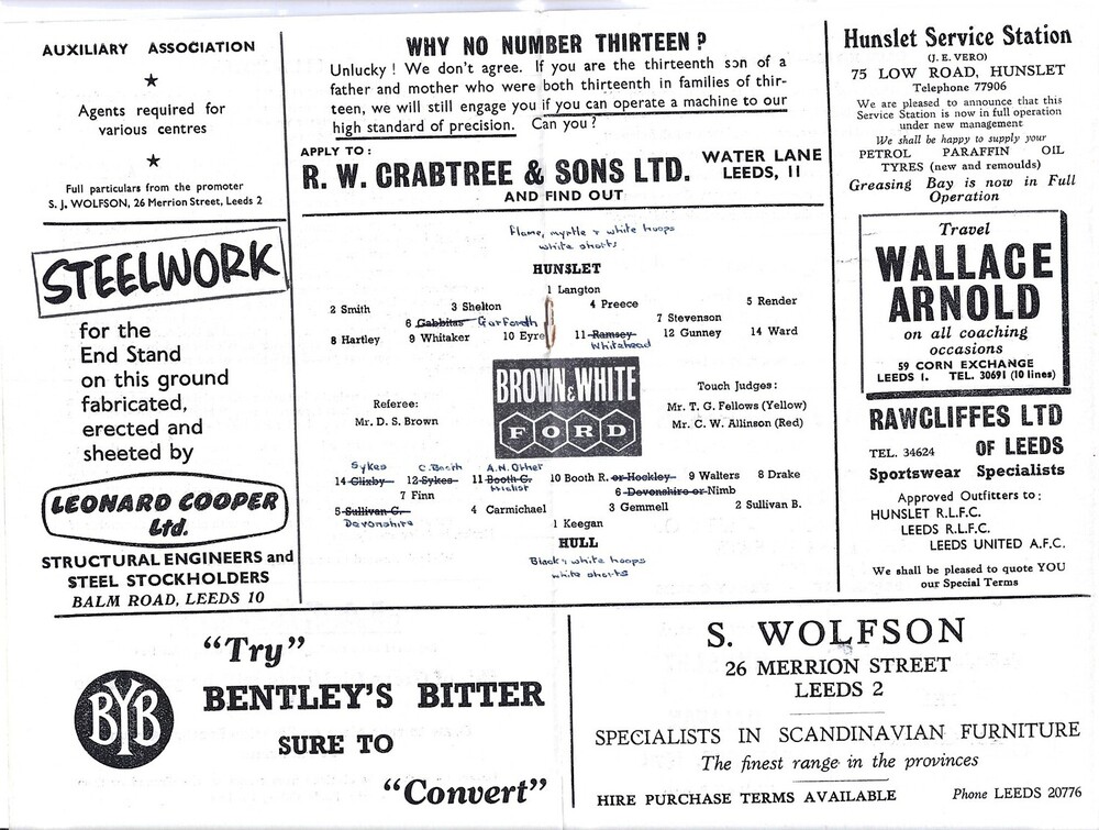1963/64 Hunslet v Hull Eastern Divisional Championship Group Match Rugby League Programme