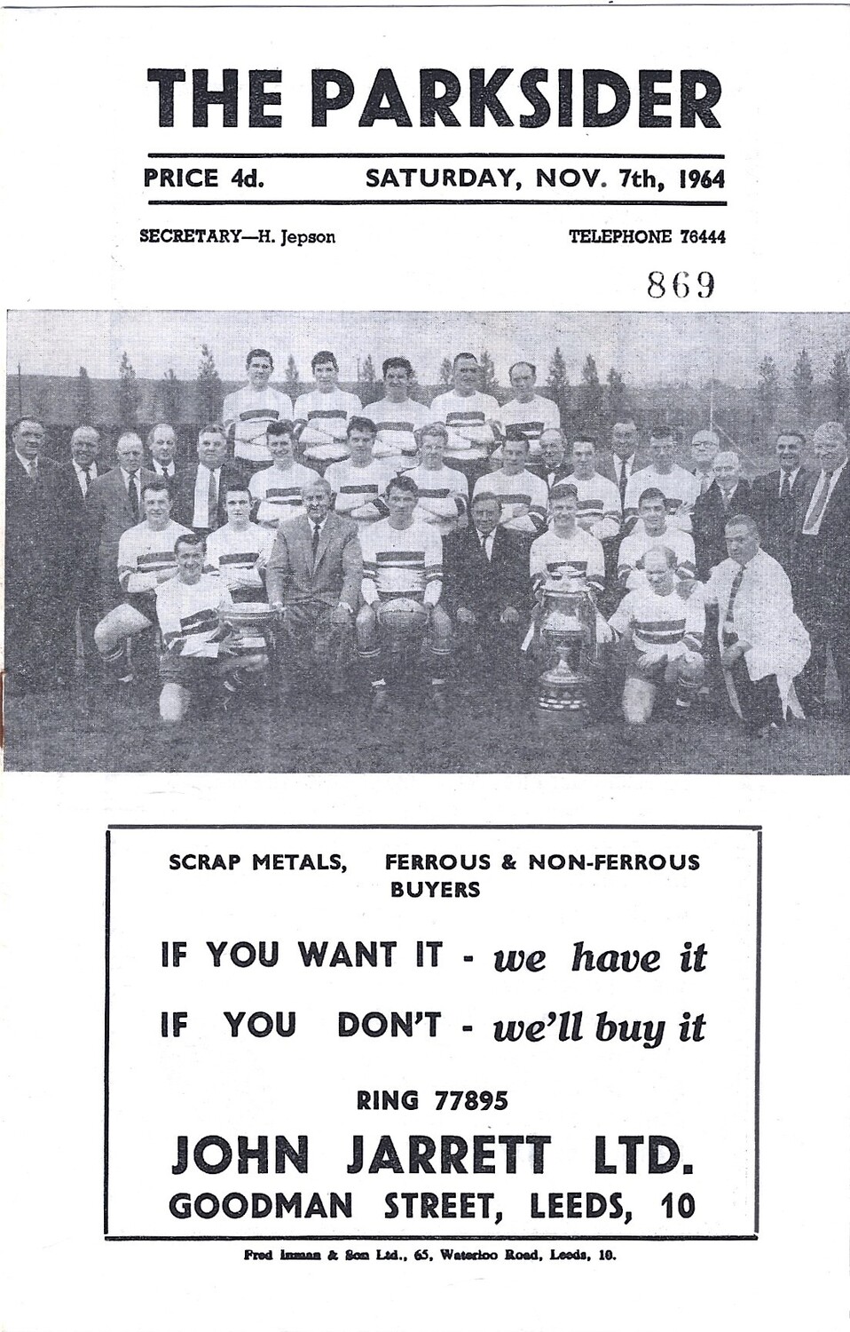 1964/65 Hunslet v York Rugby League Programme