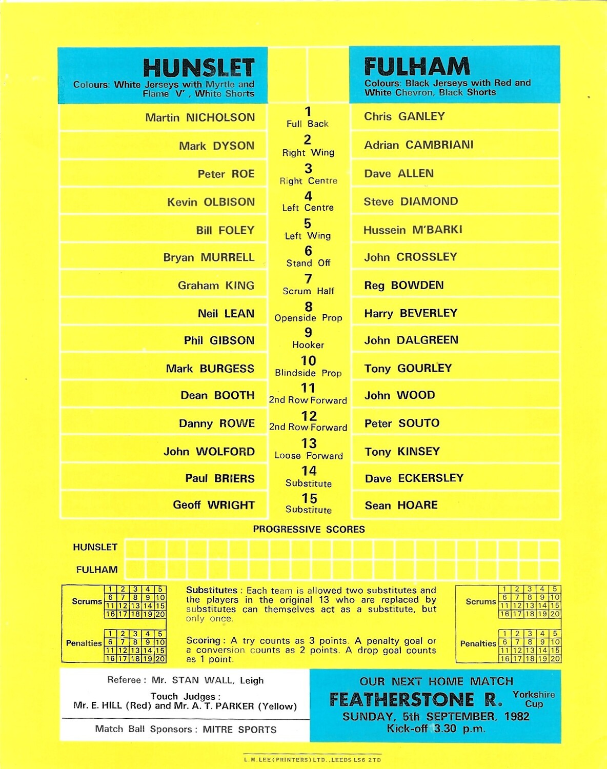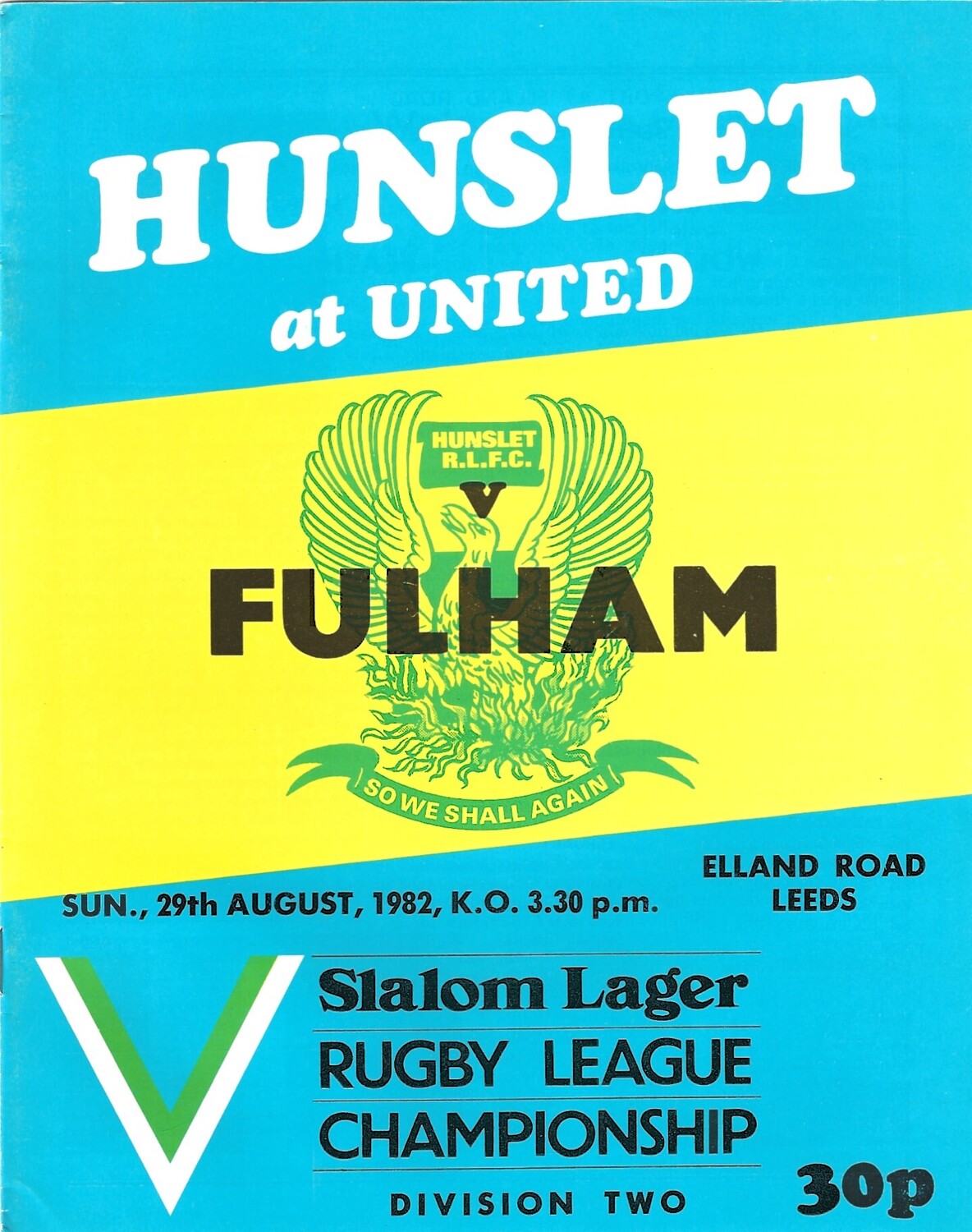 1982/83 Hunslet v Fulham Rugby League programme