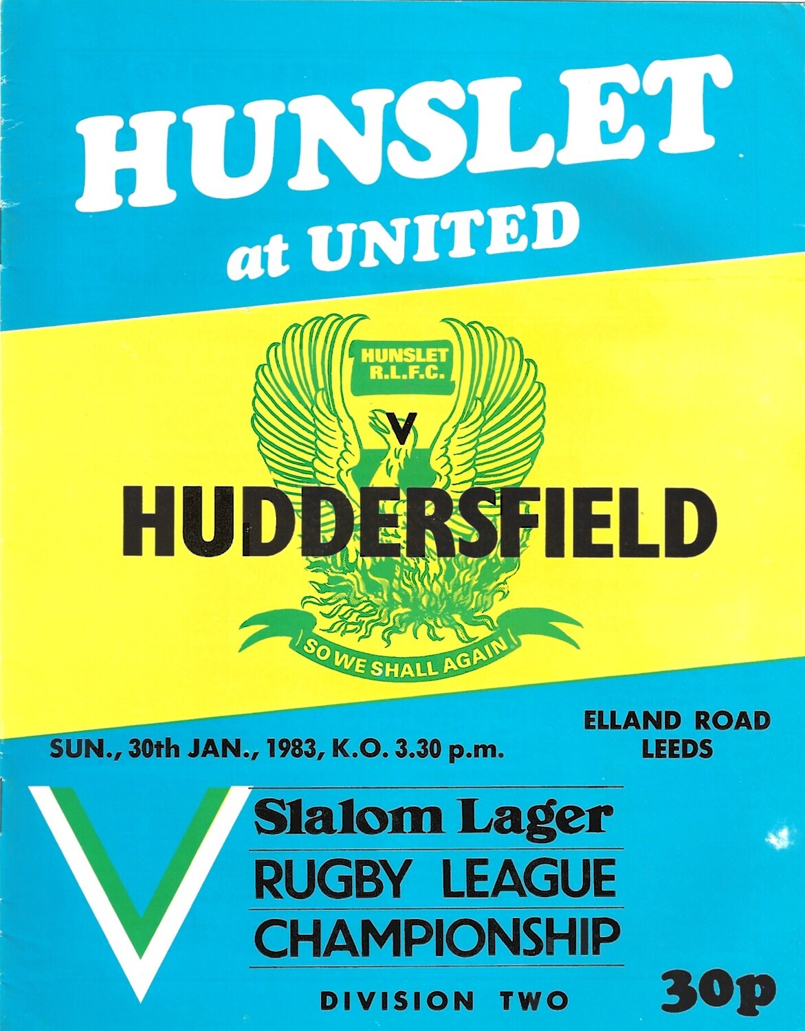 1982/83 Hunslet v Huddersfield Rugby League programme