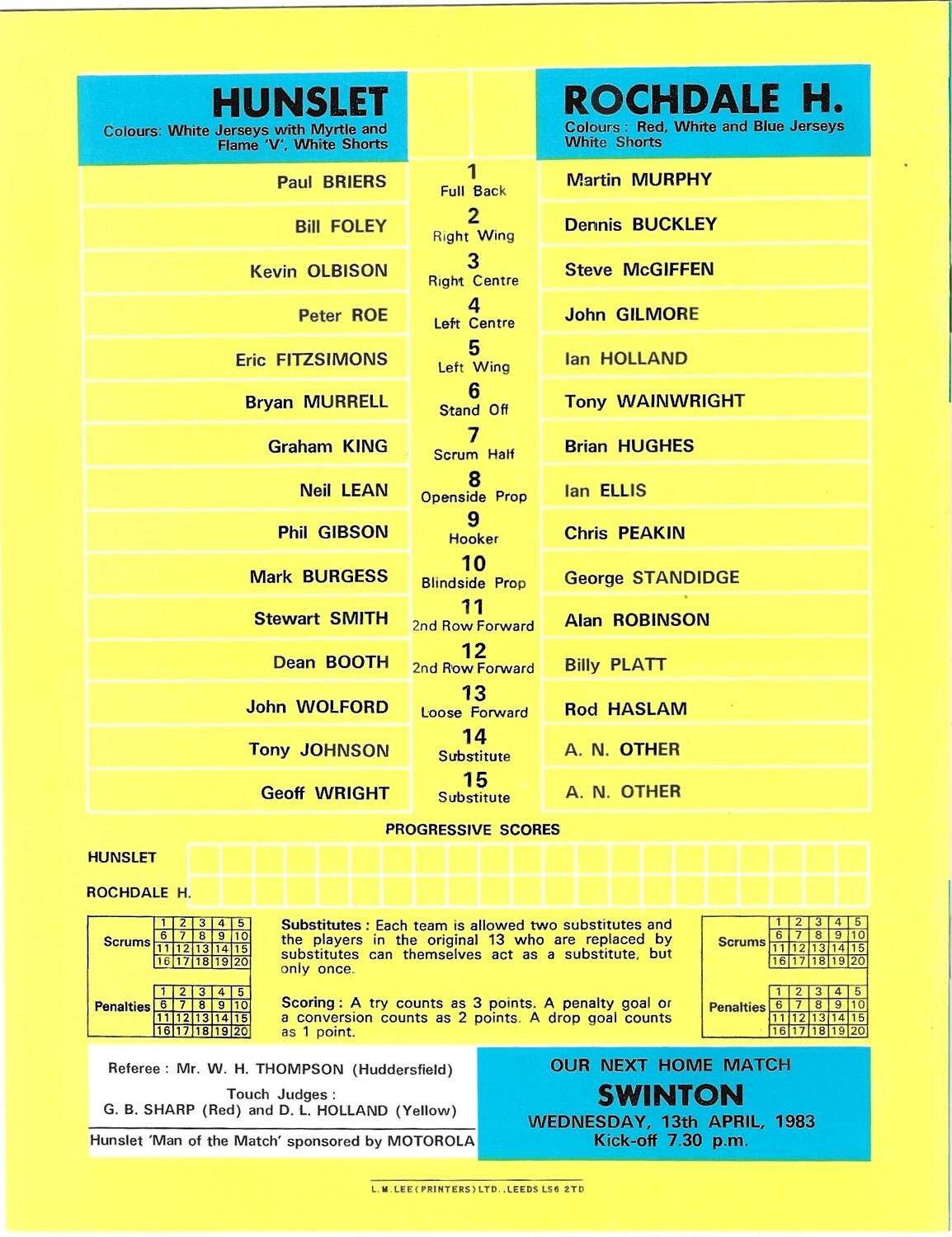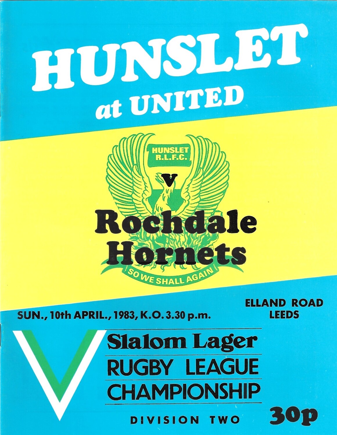 1982/83 Hunslet v Rochdale Hornets Rugby League programme