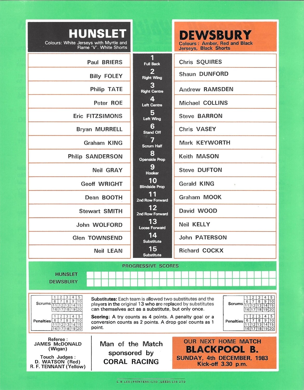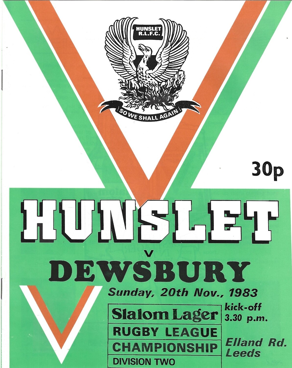 1983/84 Hunslet v Dewsbury Rugby League programme