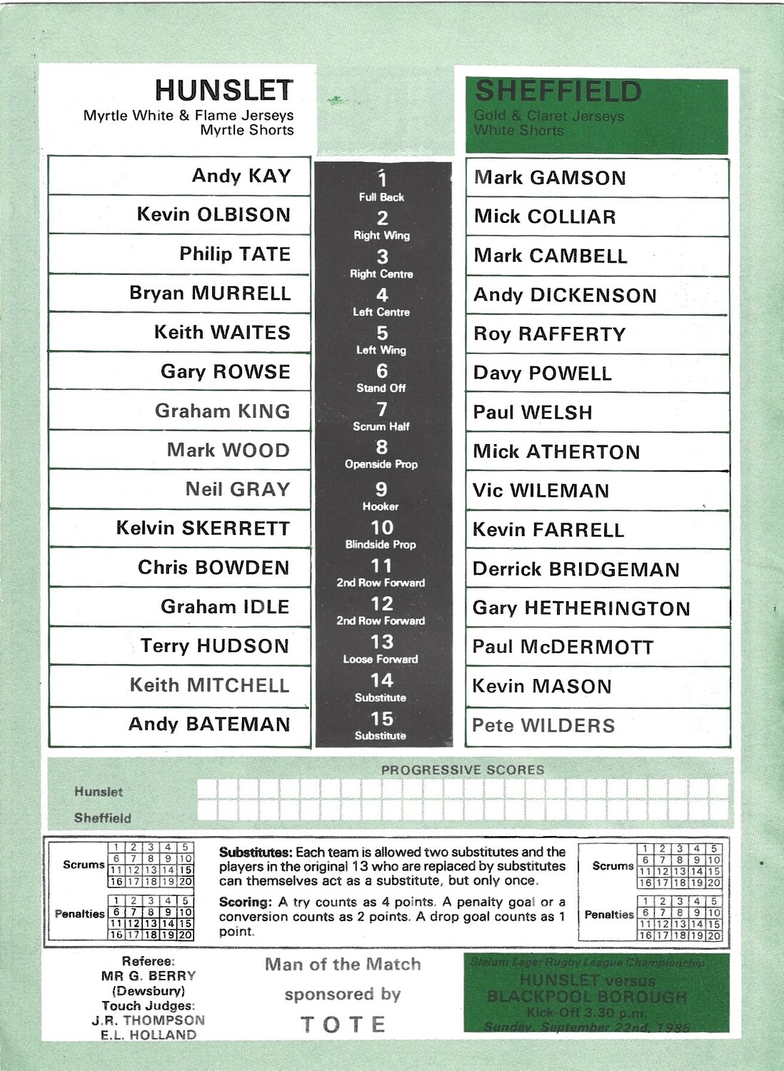 1985/86 Hunslet v Sheffield Eagles Rugby League programme