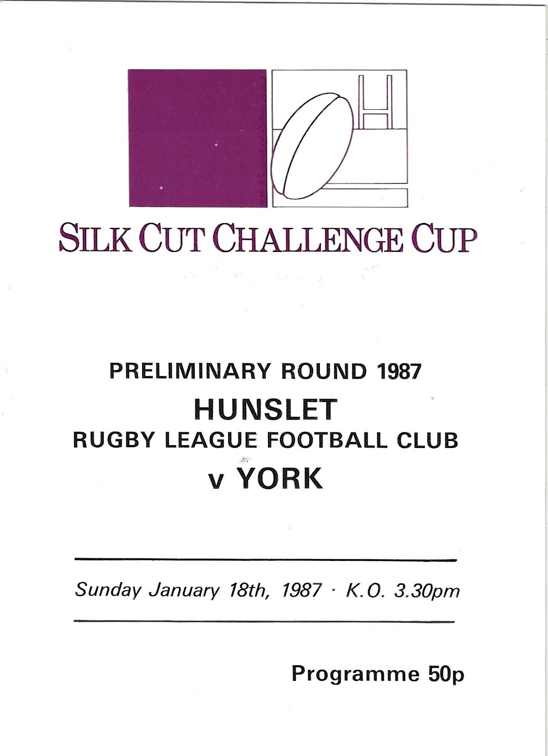 1986/87 Hunslet v York Rugby League Challenge Cup Preliminary Round programme
