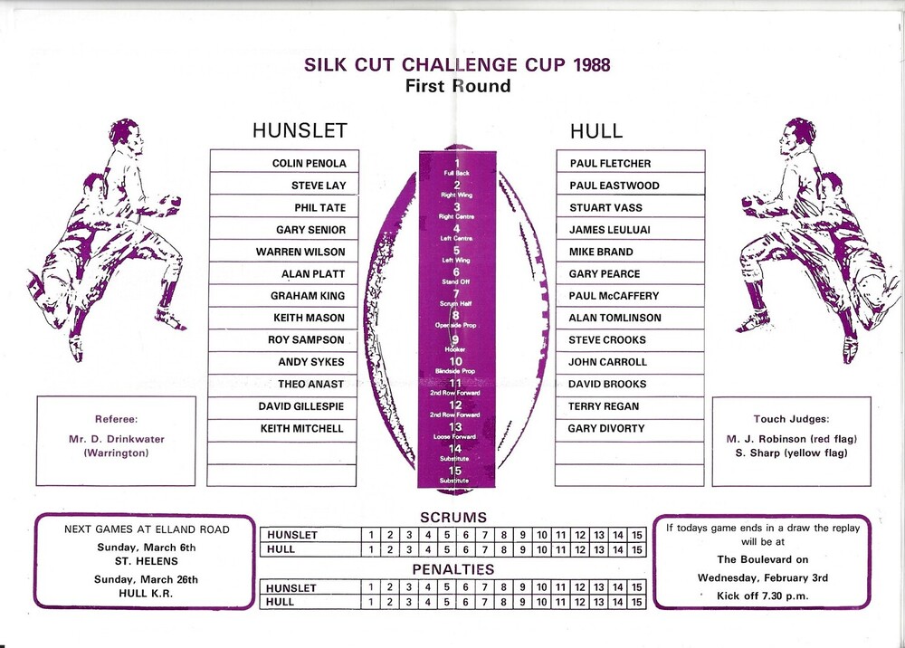 1987/88 Hunslet v Hull Rugby League Challenge Cup 1st Round programme