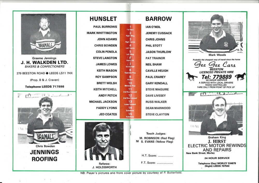 1989/90 Hunslet v Barrow Regal Trophy 1st Round Rugby League programme