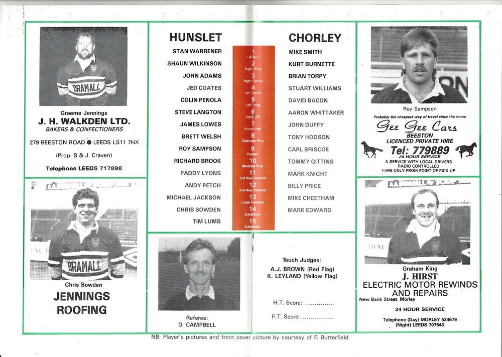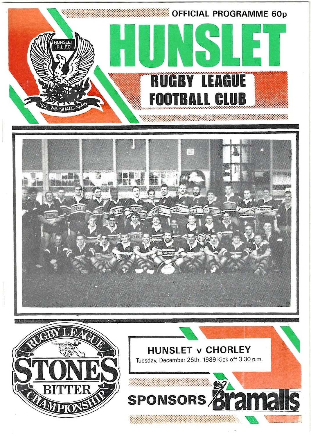 1989/90 Hunslet v Chorley Borough Rugby League programme