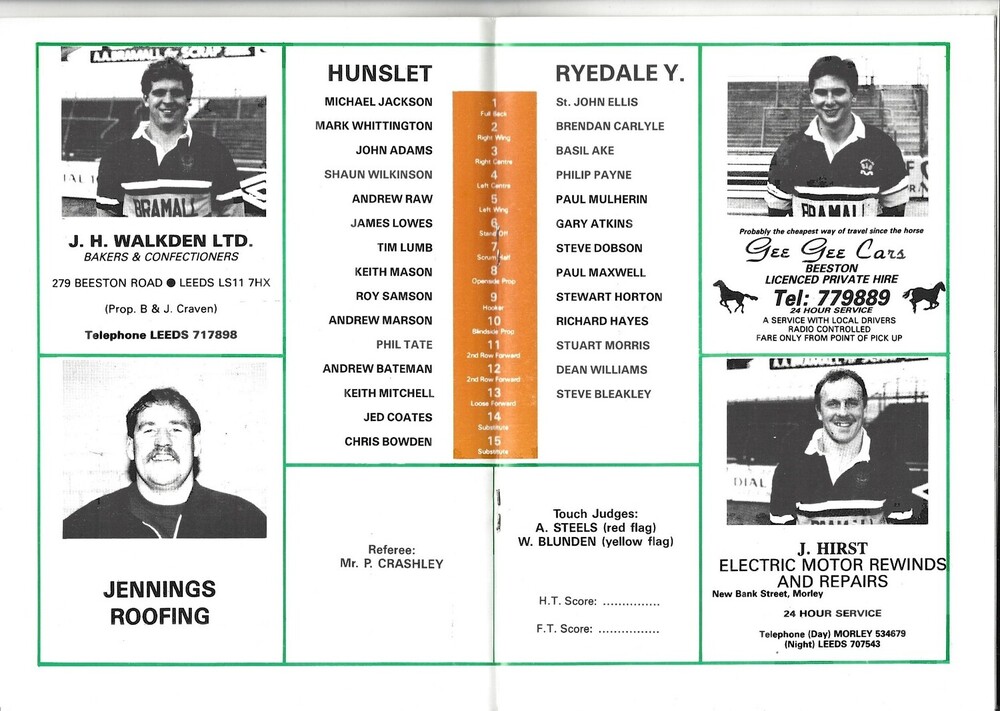 1989/90 Hunslet v Ryedale York Rugby League programme