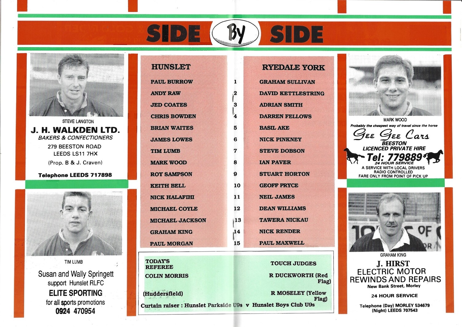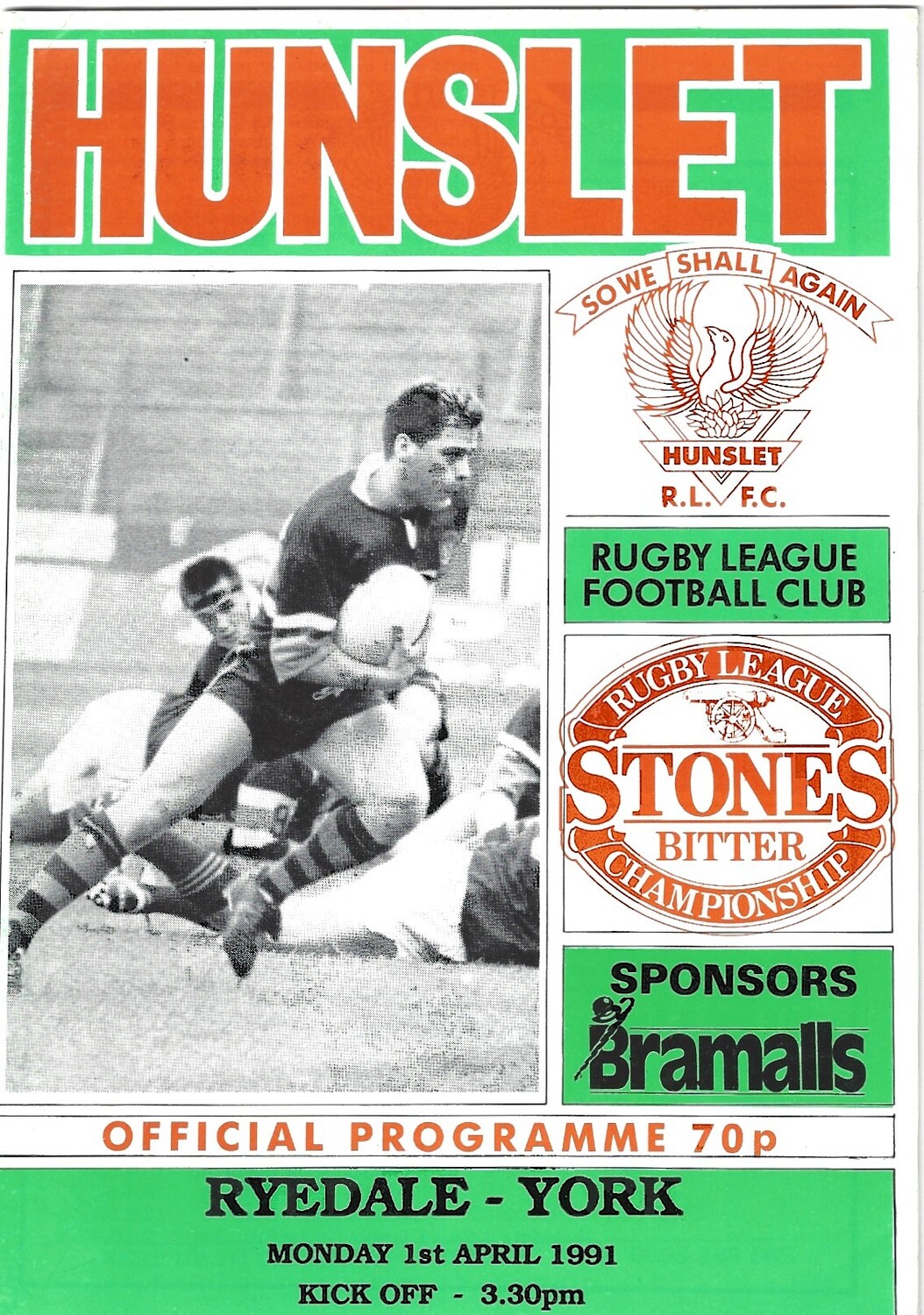 1990/91 Hunslet v Ryedale York Rugby League programme