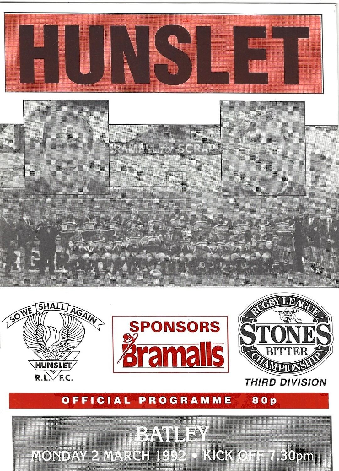1991/92 Hunslet v Batley Rugby League programme