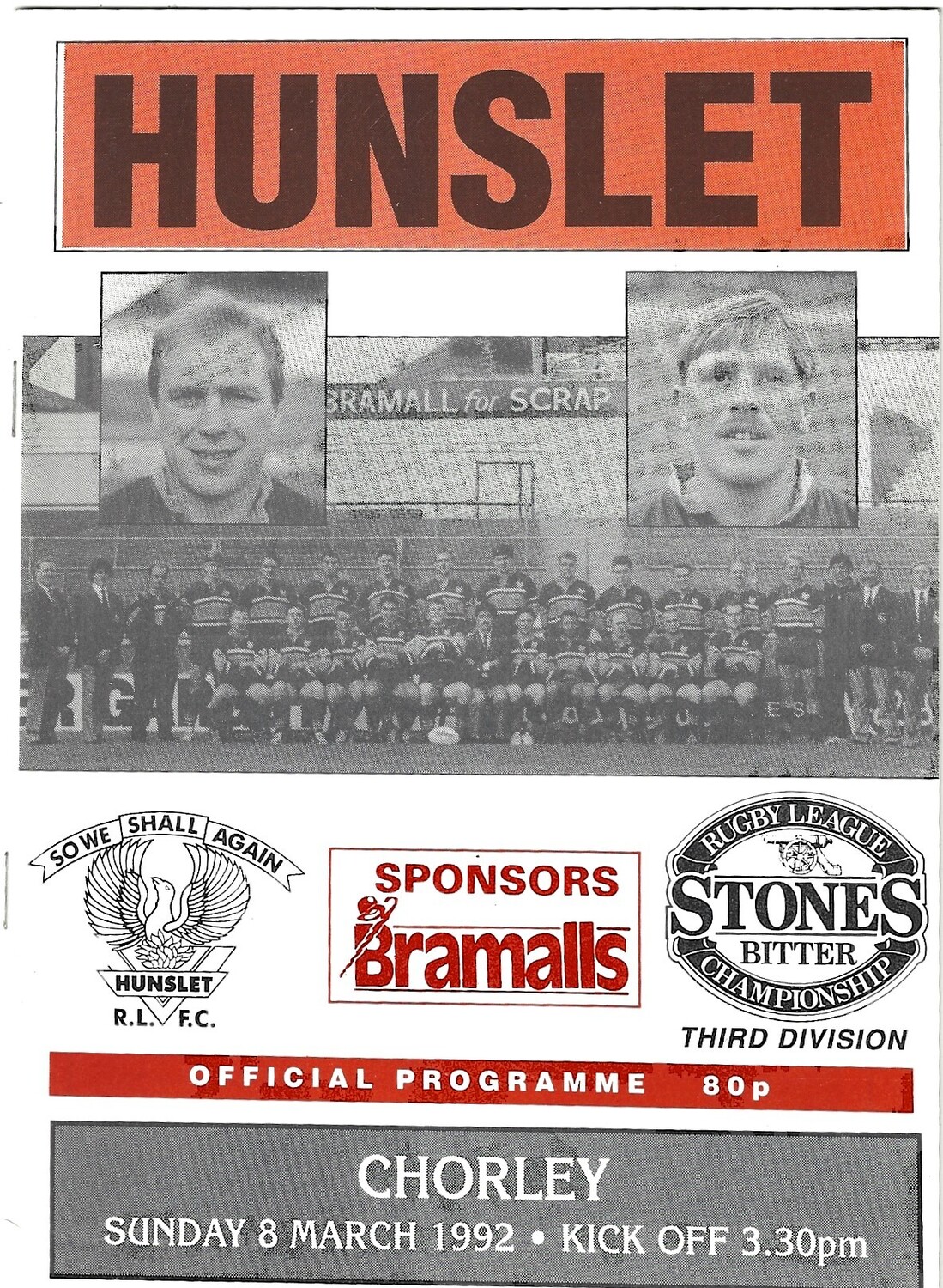 1991/92 Hunslet v Chorley Borough Rugby League programme