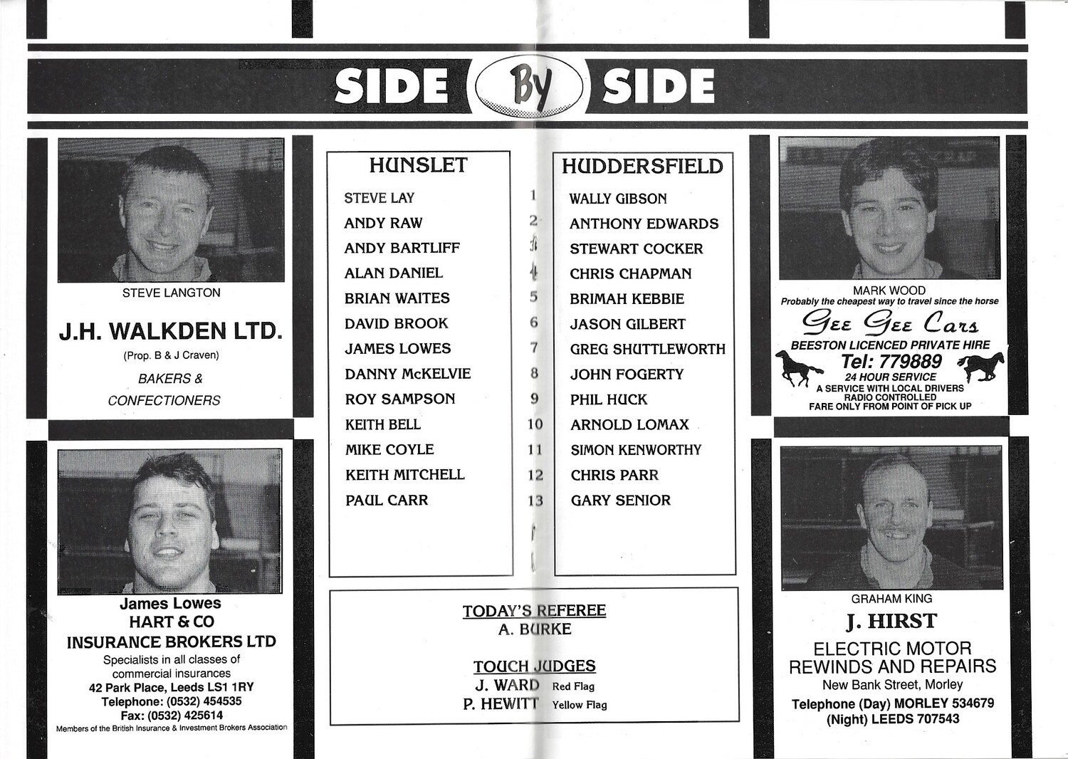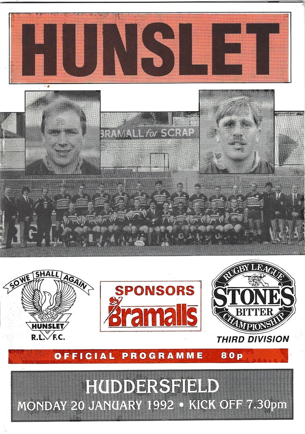 1991/92 Hunslet v Huddersfield Rugby League programme