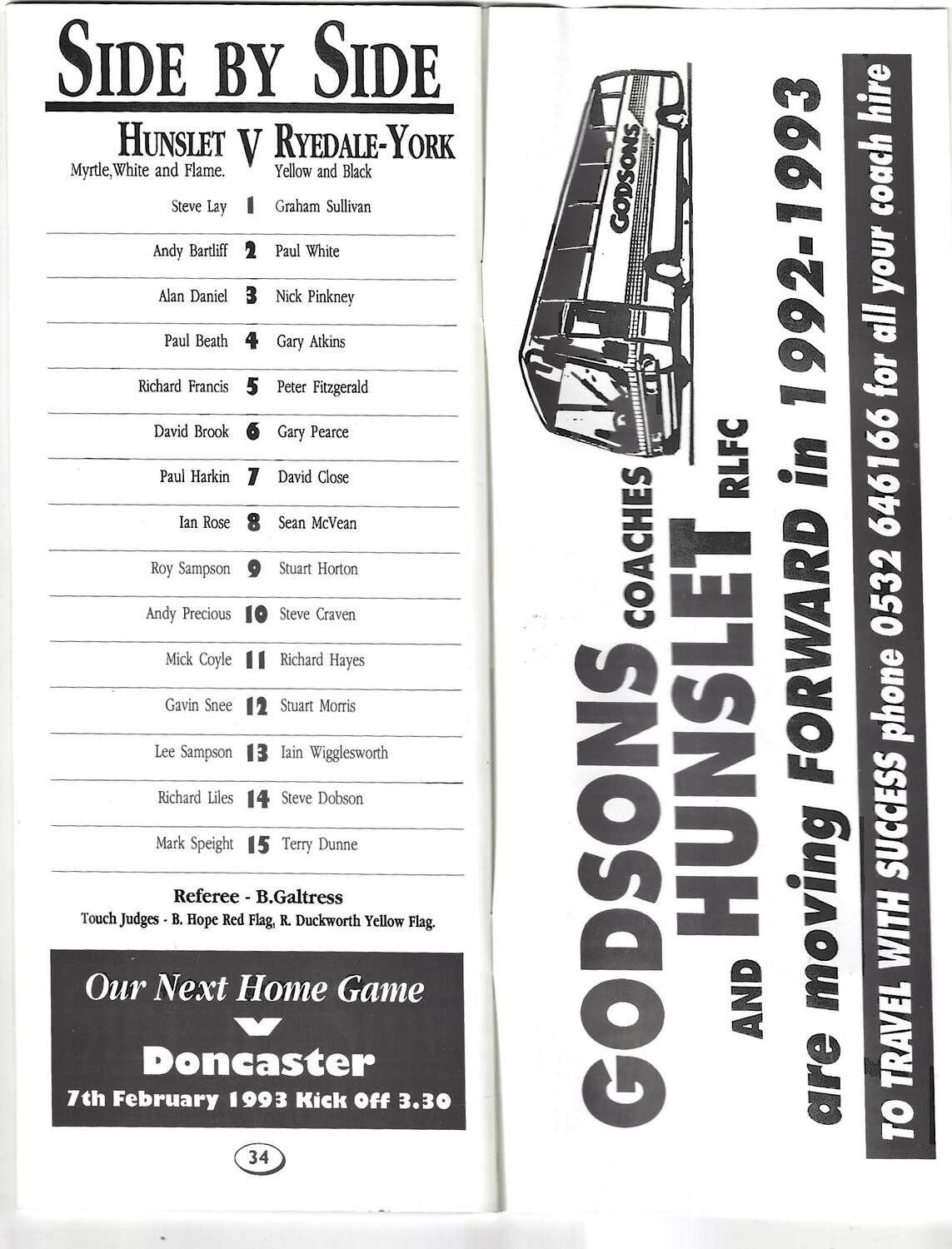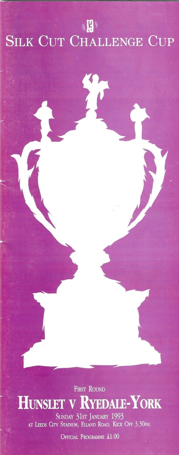 1992/93 Hunslet v Ryedale York Rugby League Challenge Cup 1st Round programme