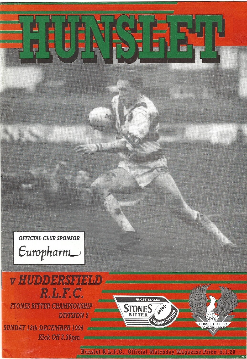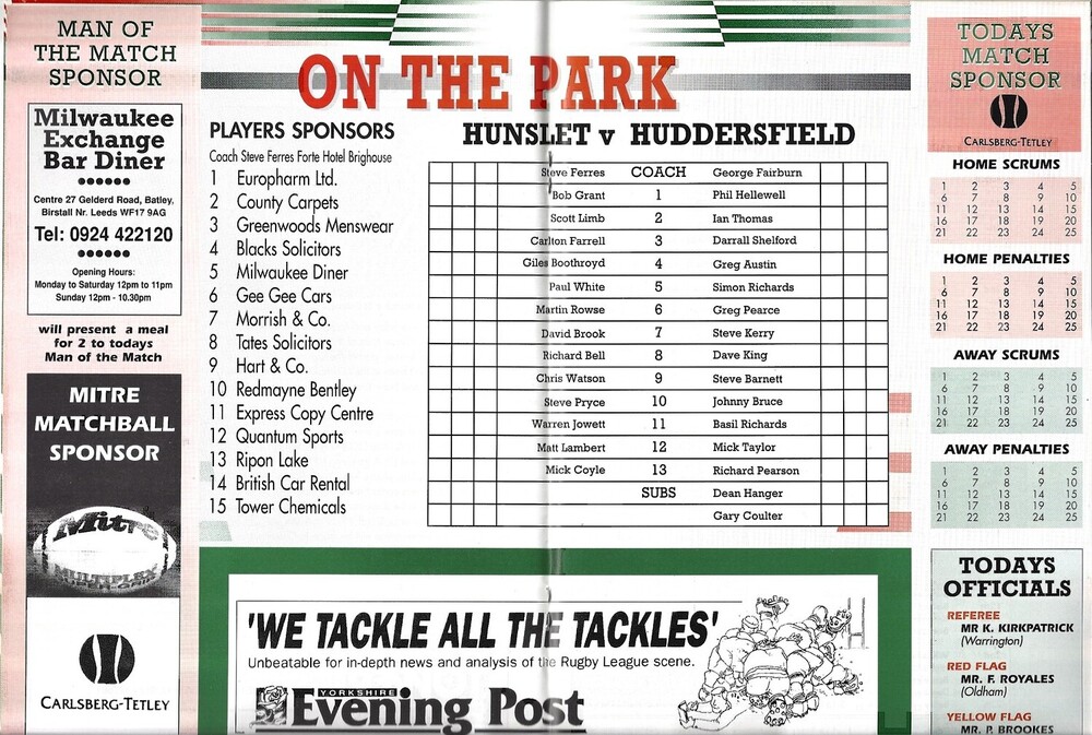1994/95 Hunslet v Huddersfield Rugby League programme