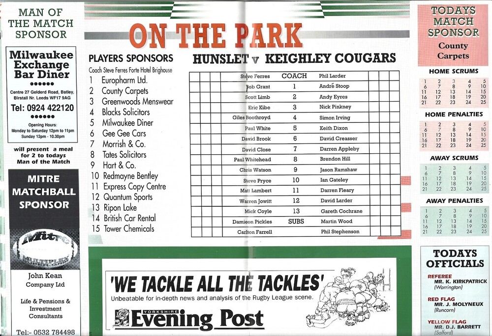 1994/95 Hunslet v Keighley Cougars Rugby League programme