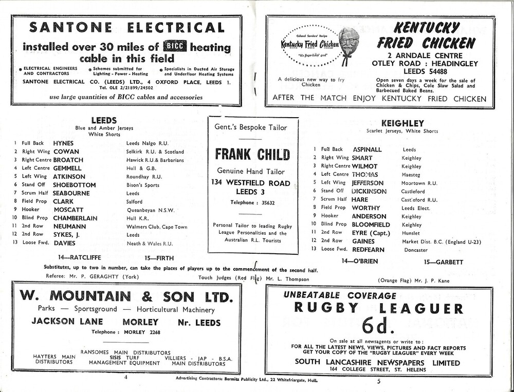 1966/67 Leeds v Keighley Rugby League programme