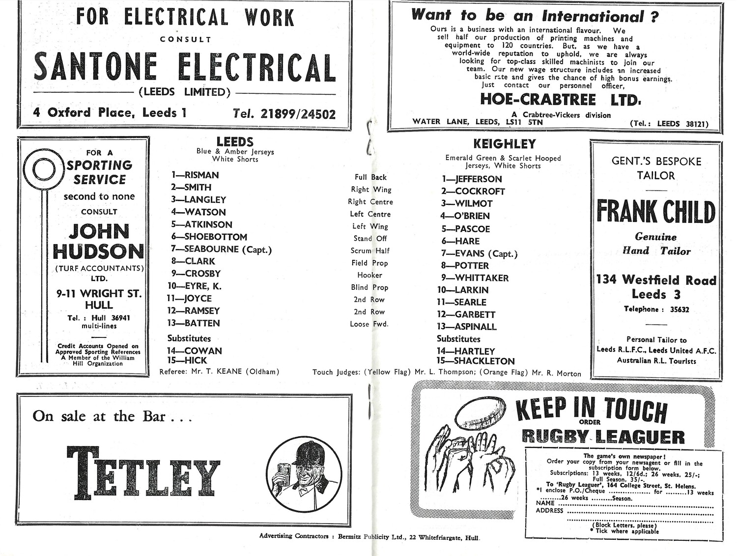 1968/69 Leeds v Keighley (12/04/1969) Rugby League Programme