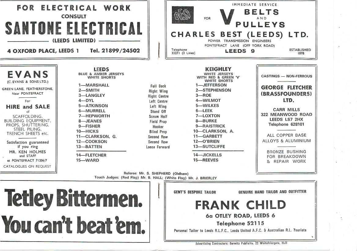 1973/74 Leeds v Keighley Club Championship 1st Round Rugby League programme