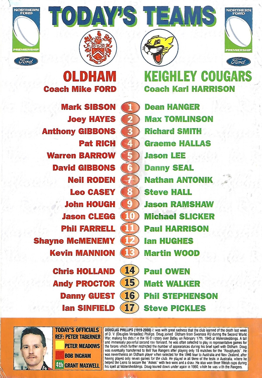 2000 Oldham v Keighley Cougars Rugby League Programme
