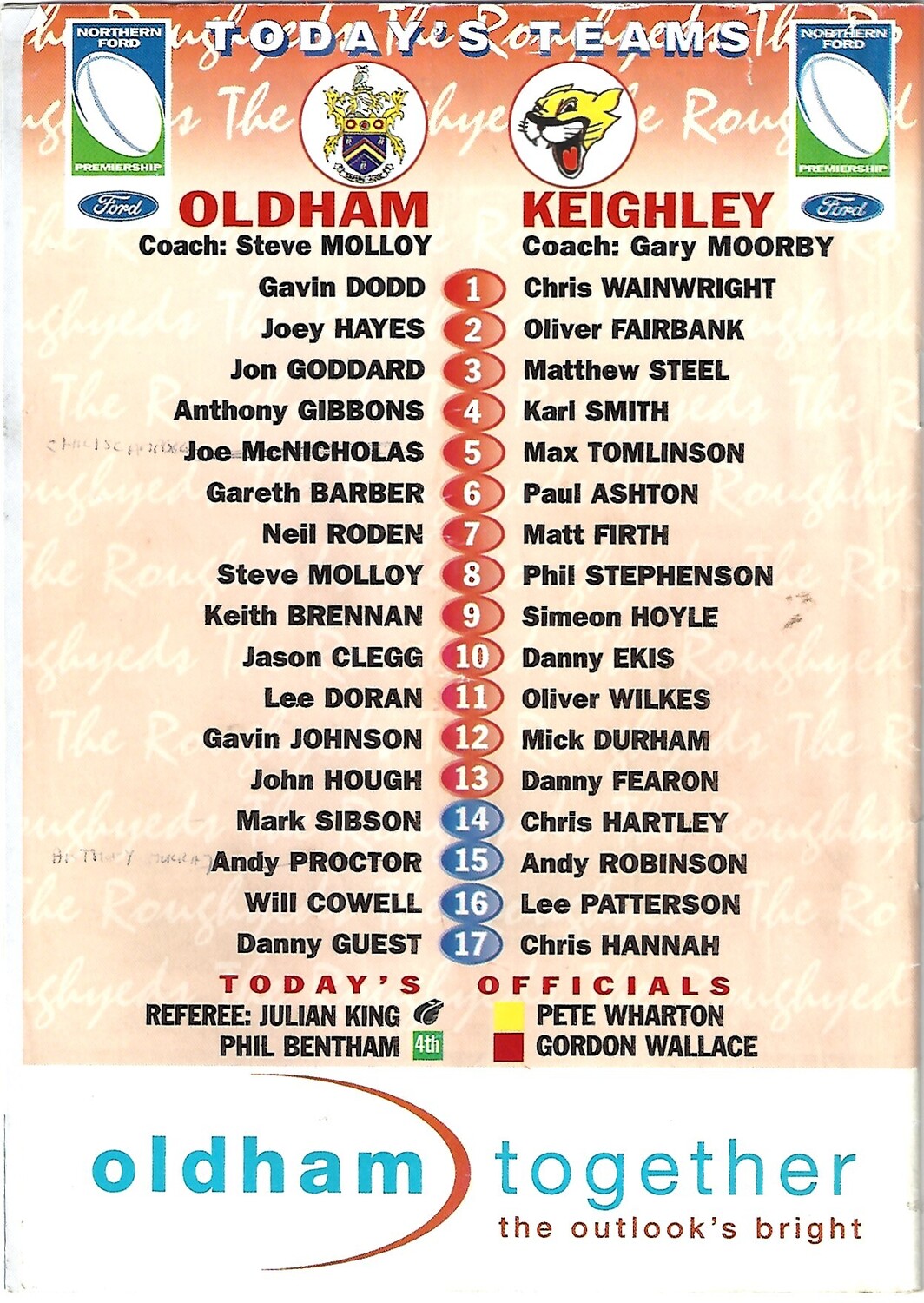 2002 Oldham v Keighley Cougars Rugby League Programme