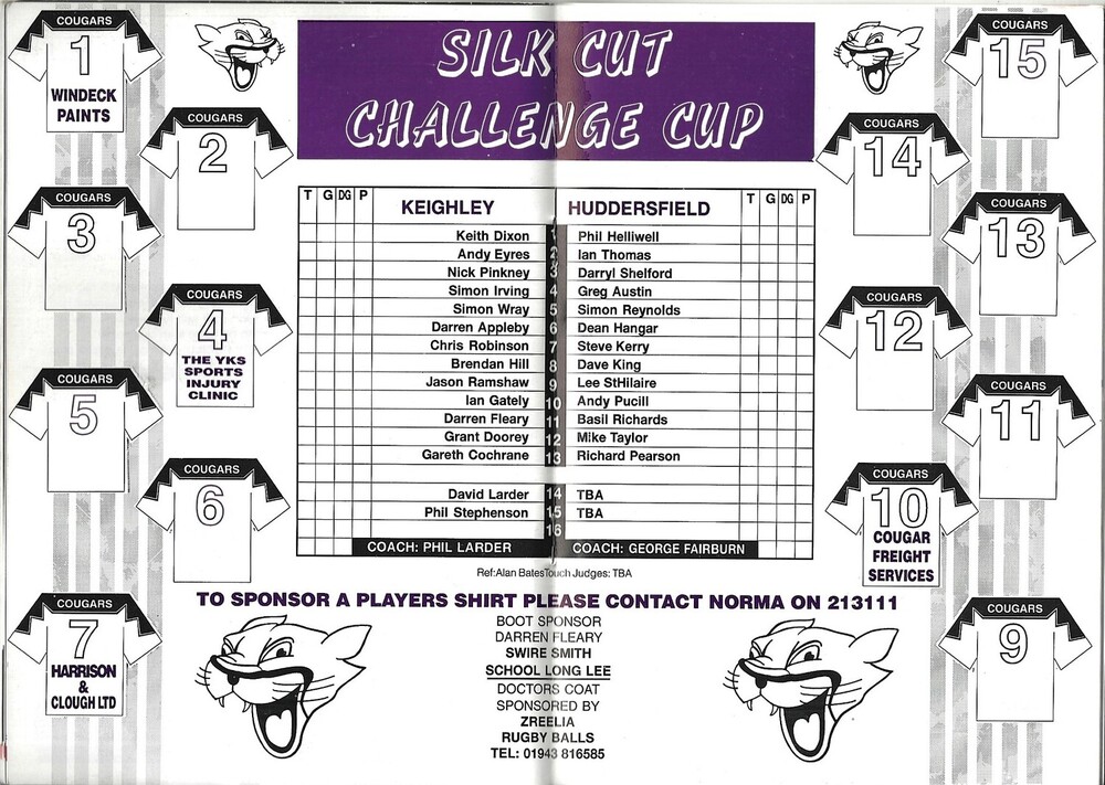 1994/95 Keighley Cougars v Huddersfield Rugby League Challenge Cup 5th Round Programme