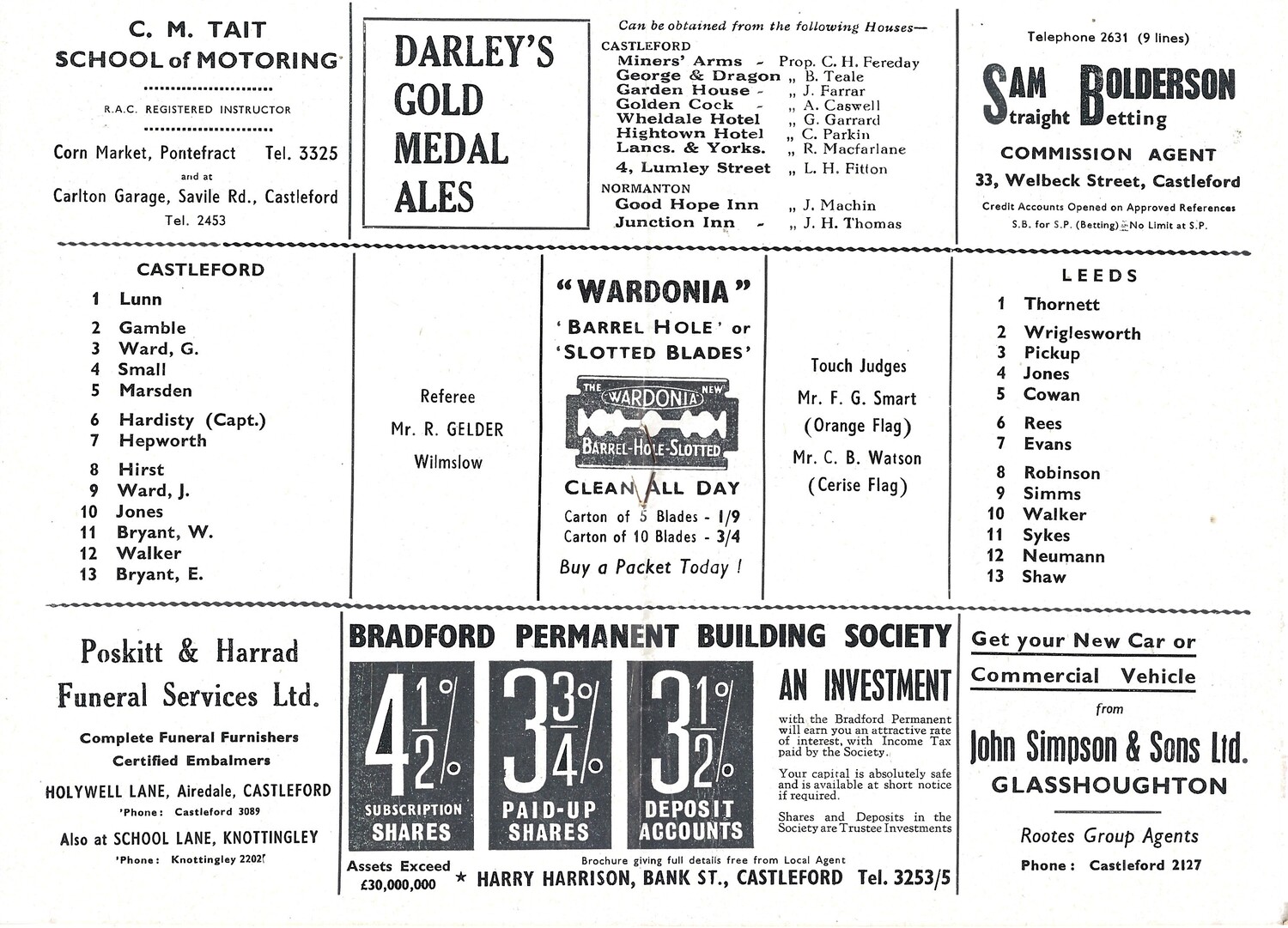 1962/63 Castleford v Leeds (09/02/1963) Rugby League Challenge Cup First Round Rugby League Programme