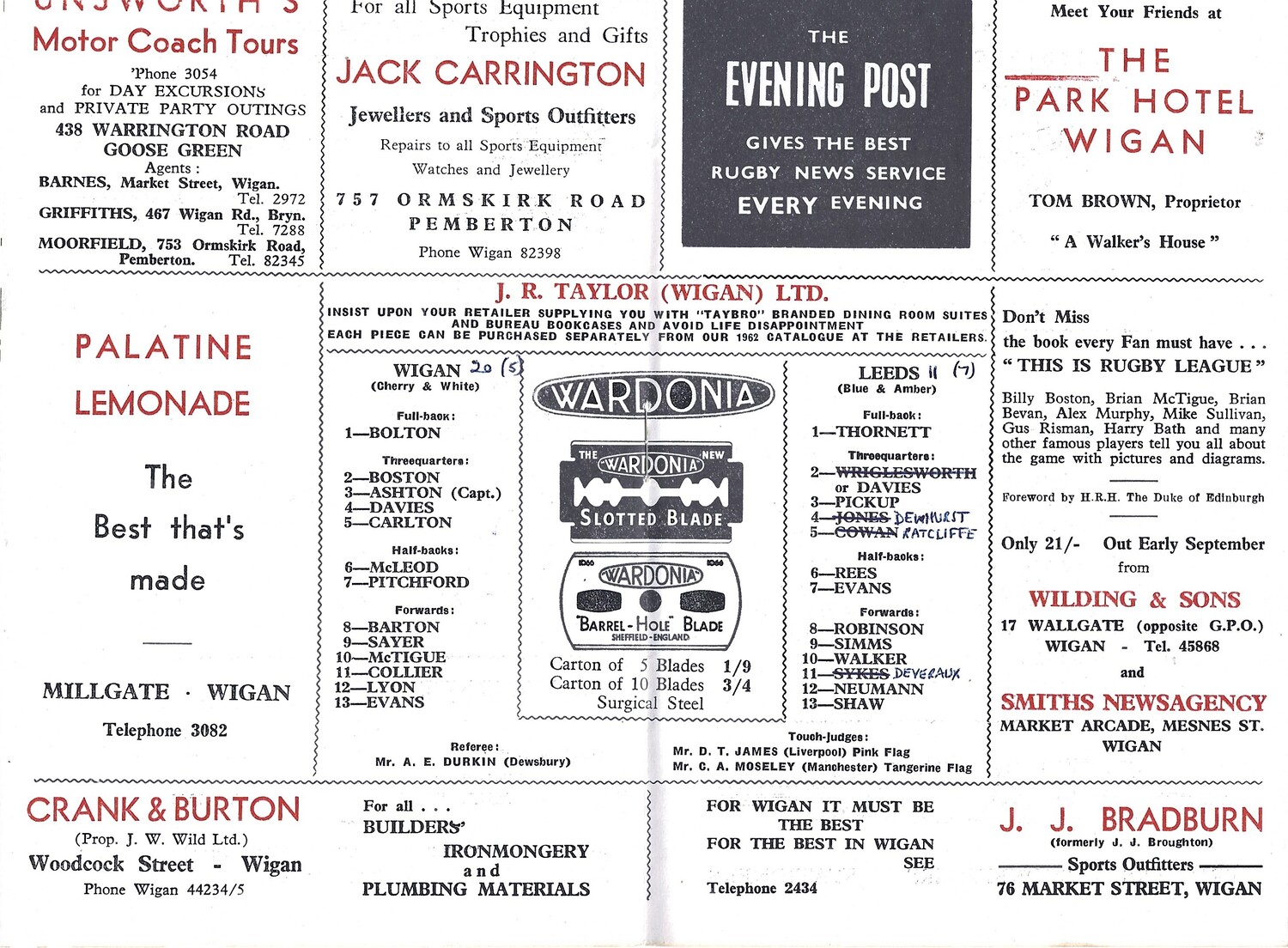 1962/63 Wigan v Leeds (16/03/1963) Rugby League Challenge Cup, Second Round Rugby League Programme
