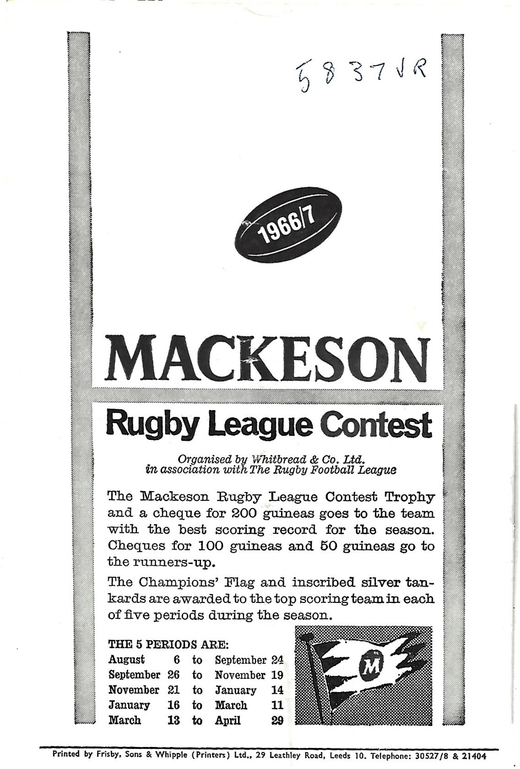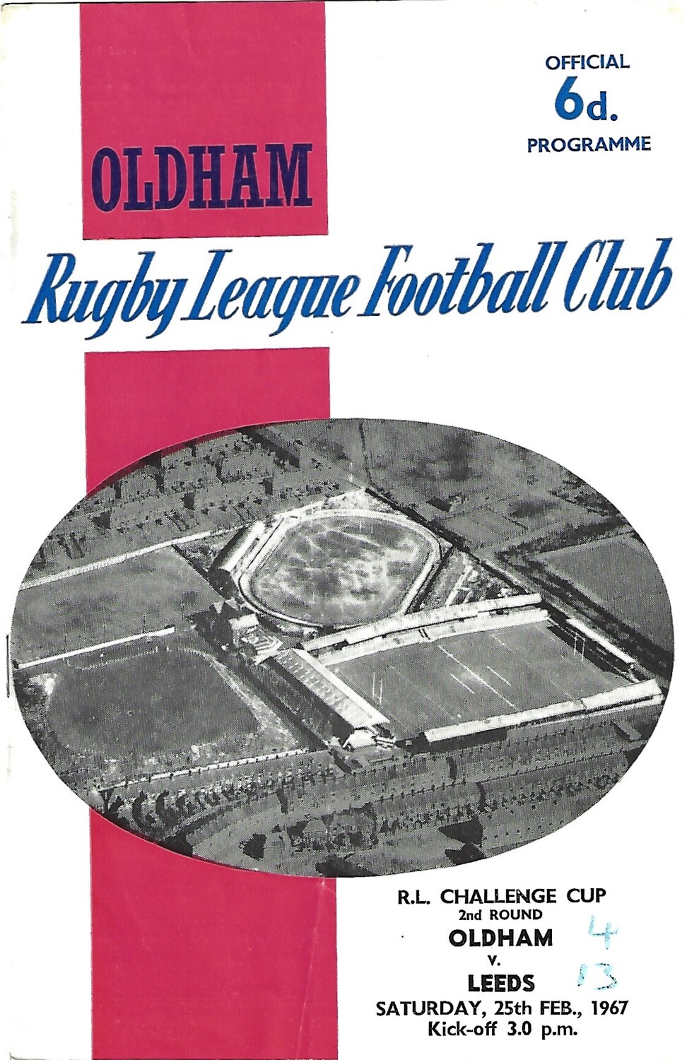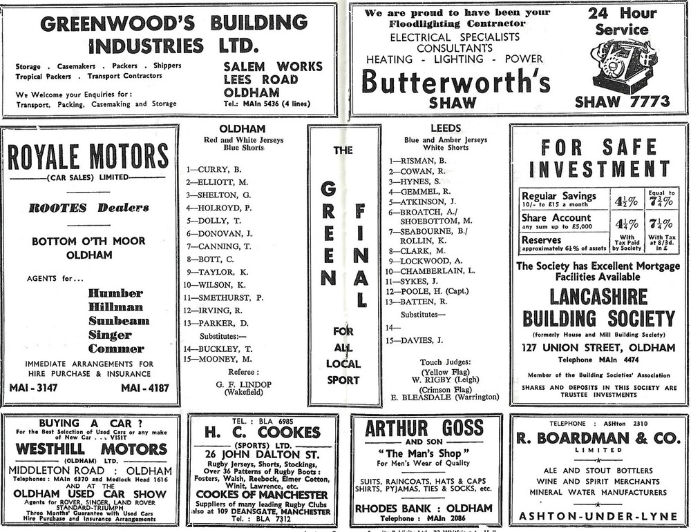 1966/67 Oldham v Leeds Rugby League Challenge Cup 2nd Round Programme