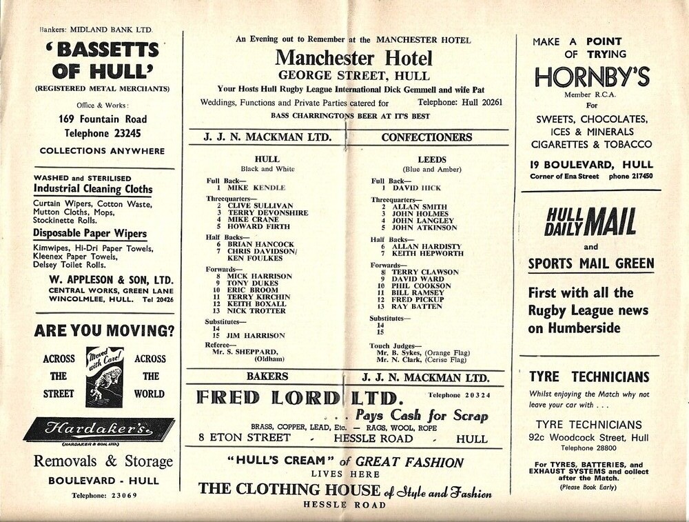 1971/72 Hull v Leeds Challenge Cup Second Round Rugby League programme