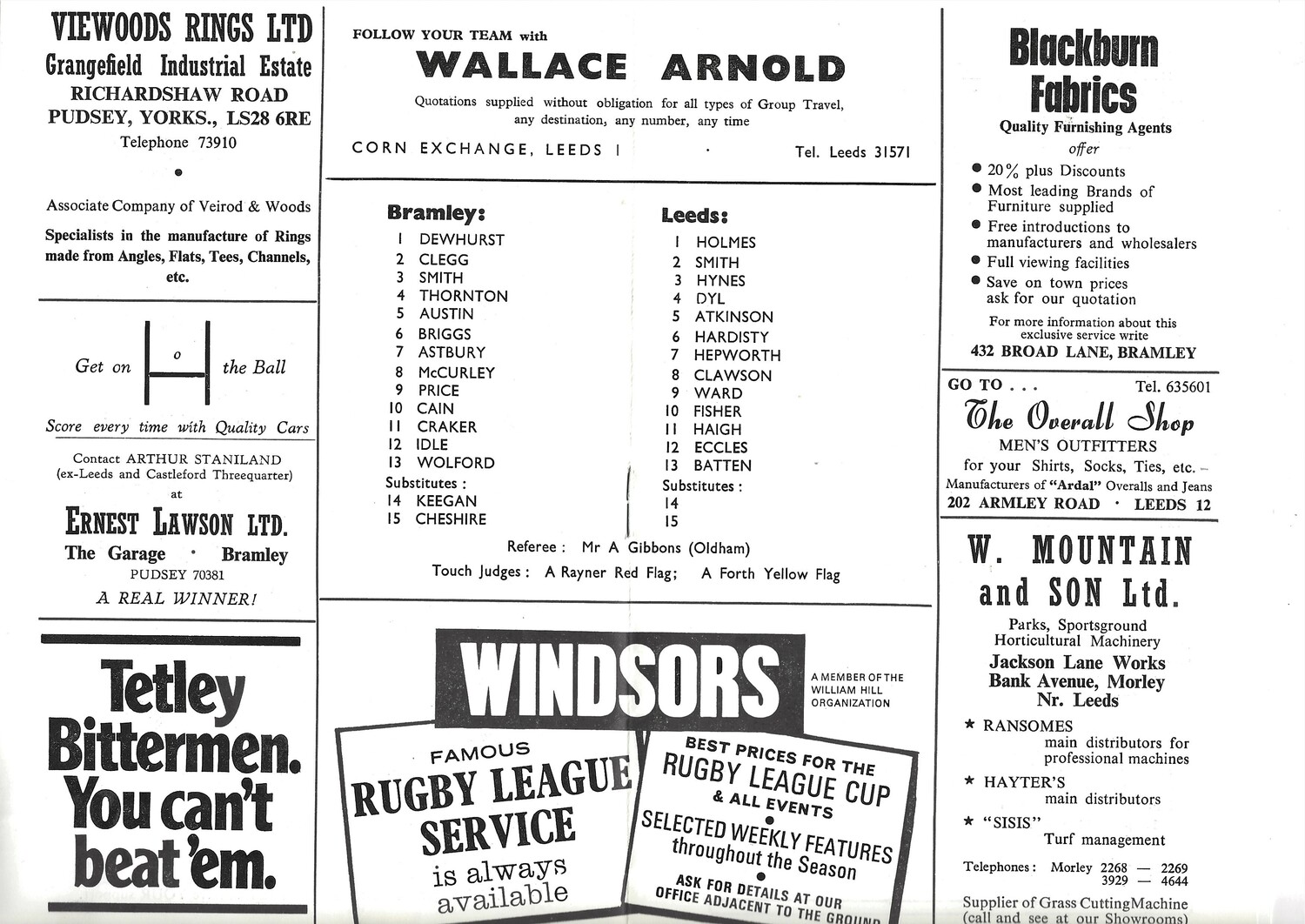 1972/73 Bramley v Leeds (16/09/1972) Rugby League Programme