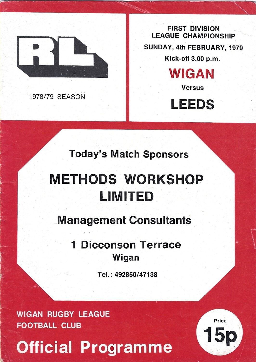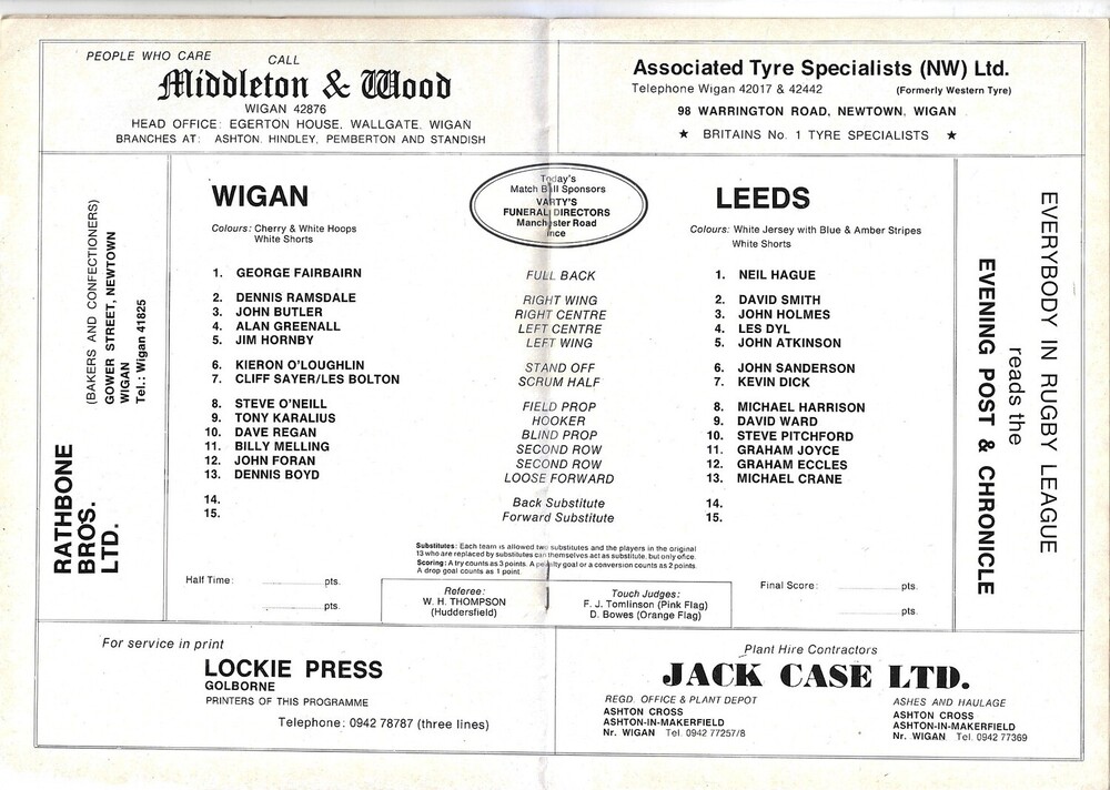 1978/79 Wigan v Leeds Rugby League Programme