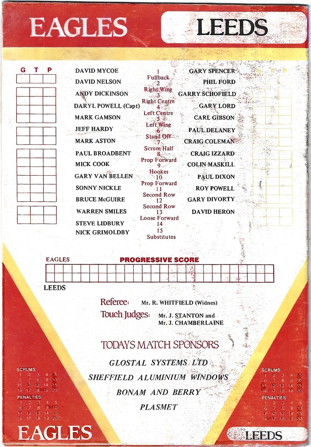 1989/90 Sheffield Eagles v Leeds Rugby League programme