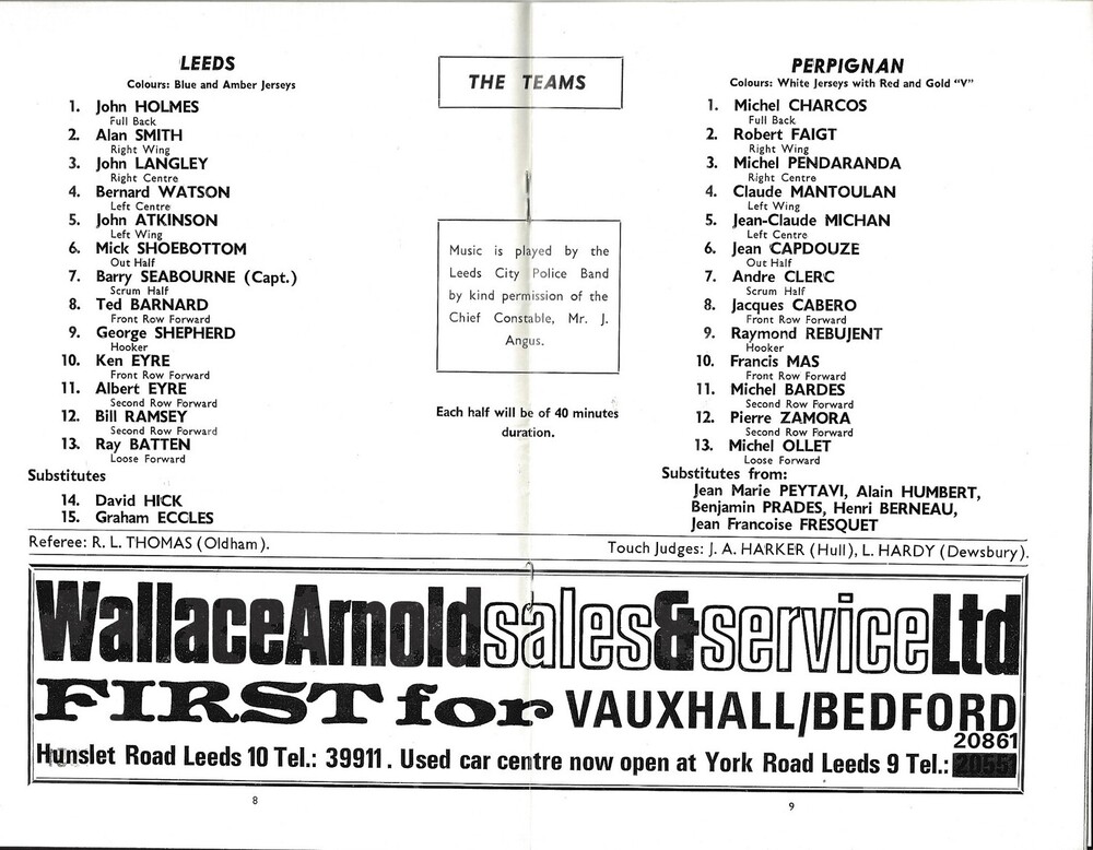 1969/70 Leeds v Perpignan European Club Championship Rugby League programme