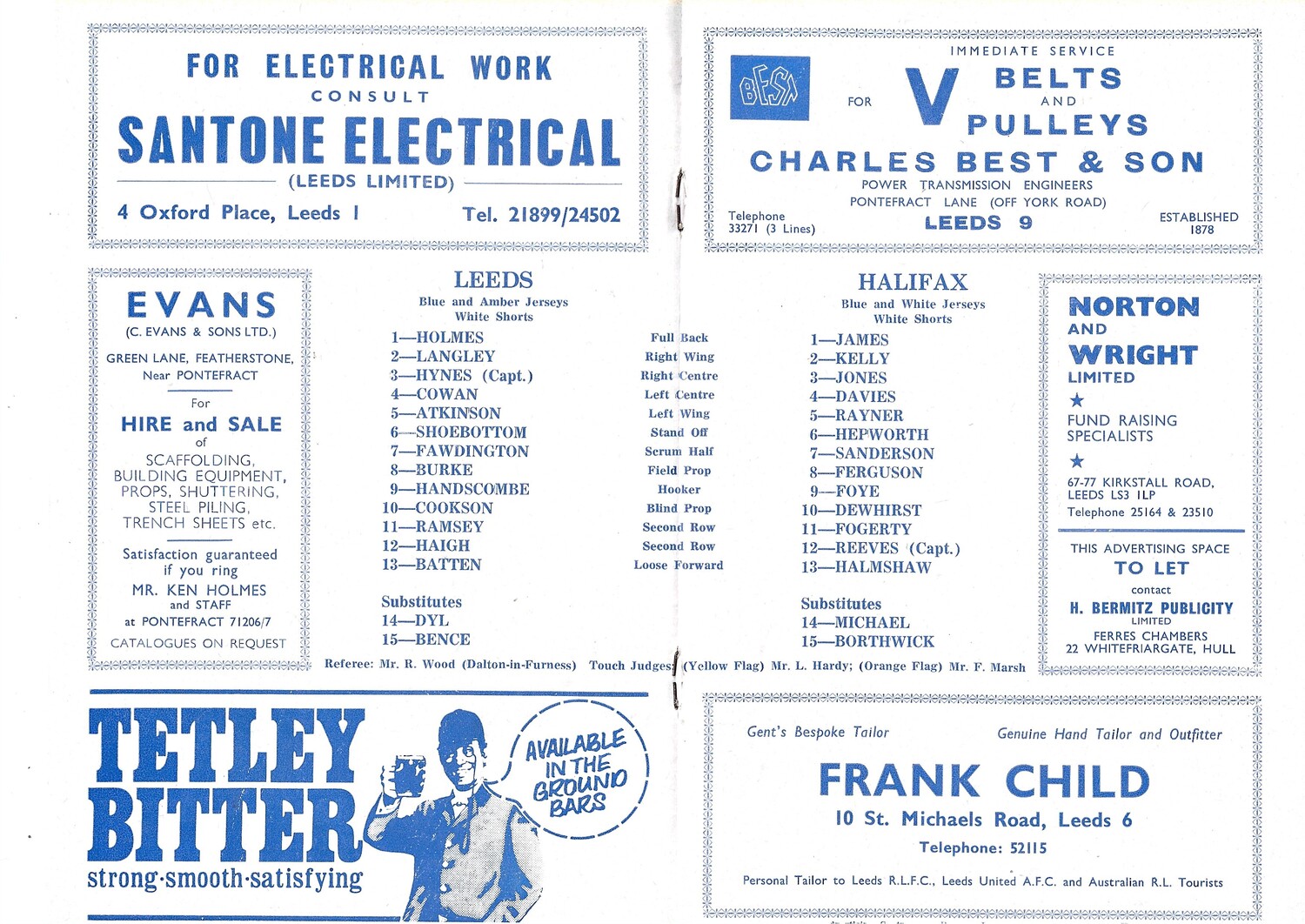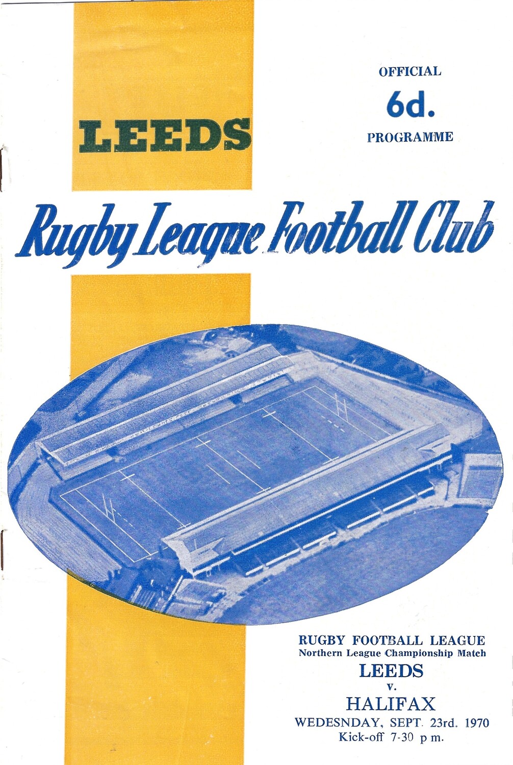 1970/71 Leeds v Halifax (23/09/1970) Rugby League Programme