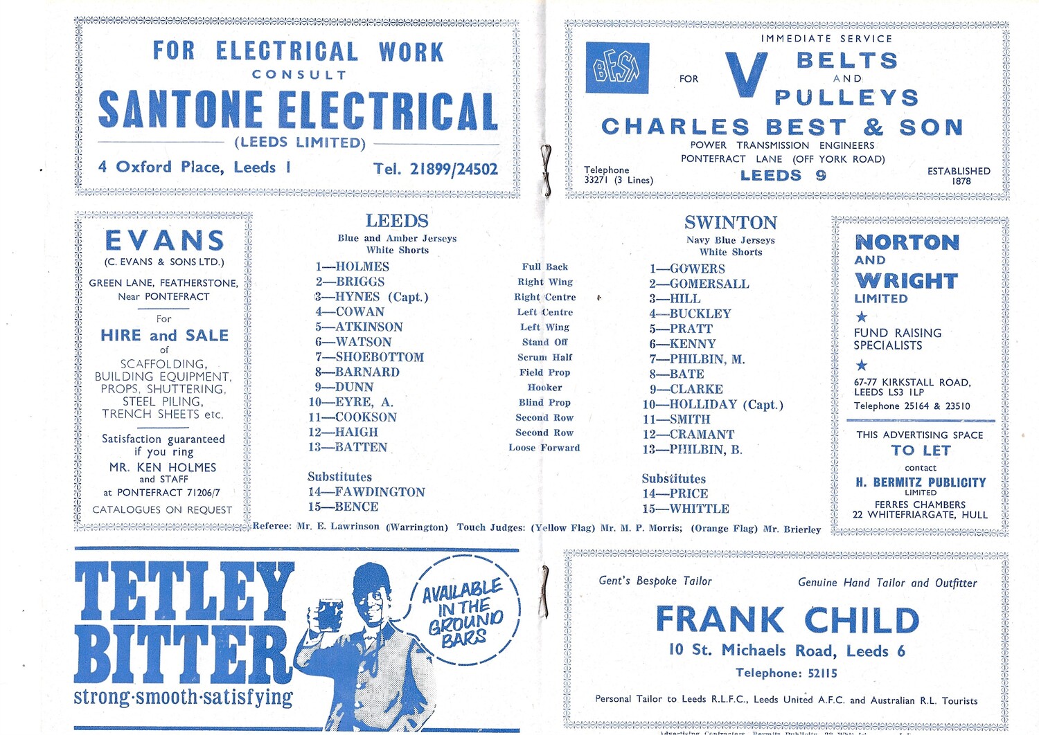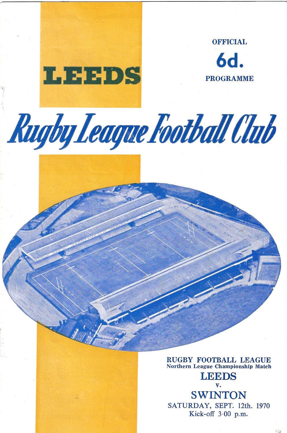 1970/71 Leeds v Swinton (12/09/1970) Rugby League Programme