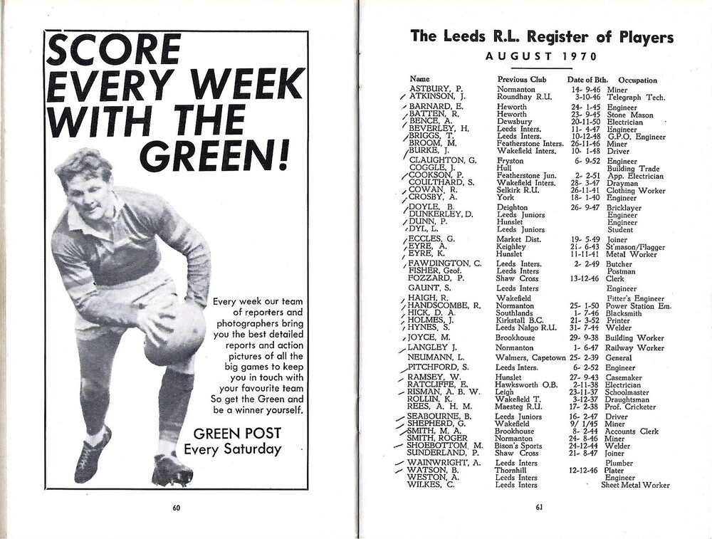 1970/71 Leeds Rugby League Supporters Handbook