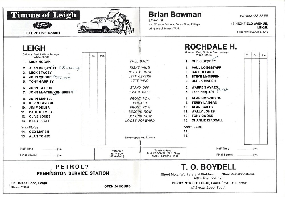 1978/79 Leigh v Rochdale Hornets Rugby League Programme