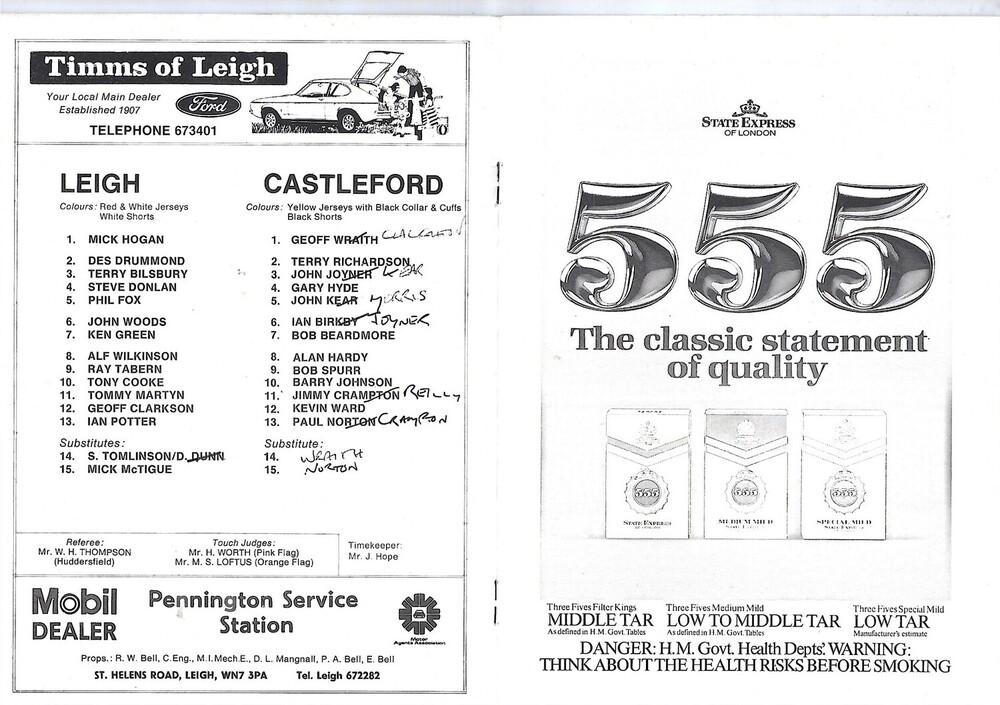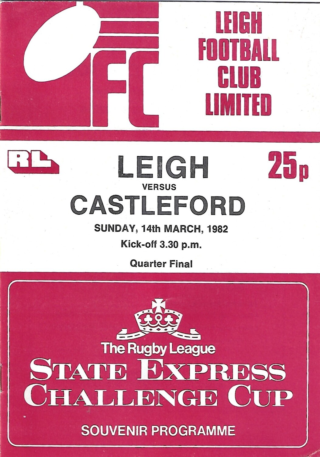 1981/82 Leigh v Castleford State Express Challenge Cup Quarter Final Rugby League Programme