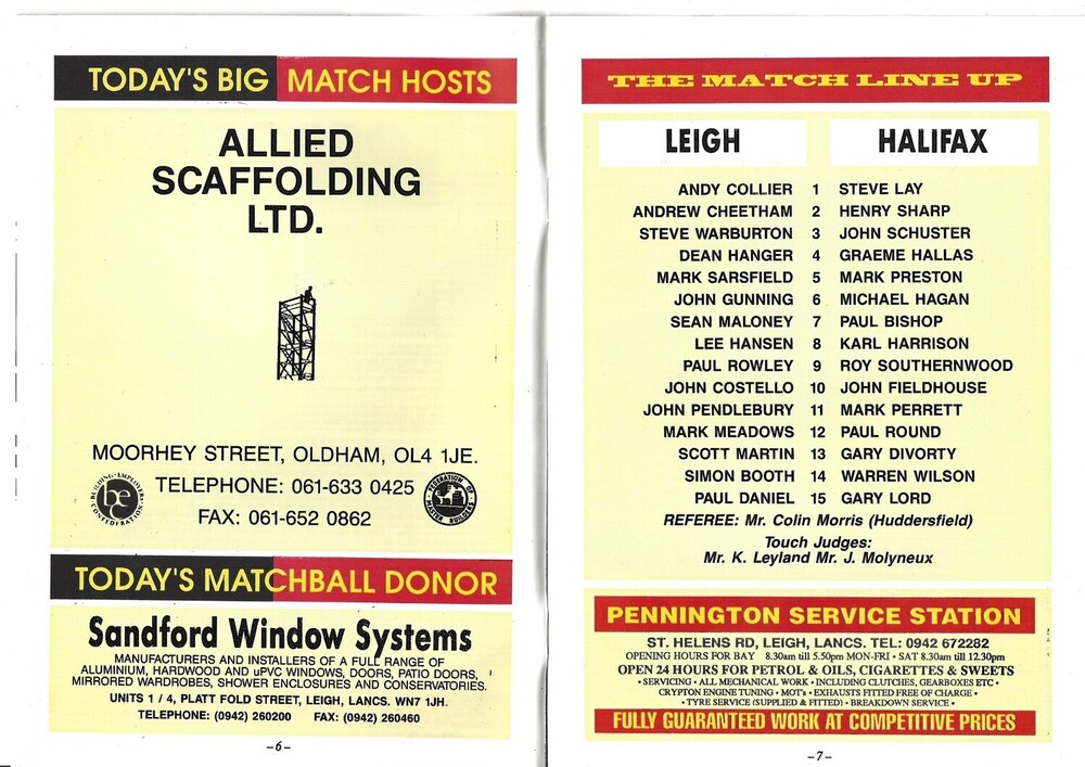 1993/94 Leigh v Halifax Rugby League Programme