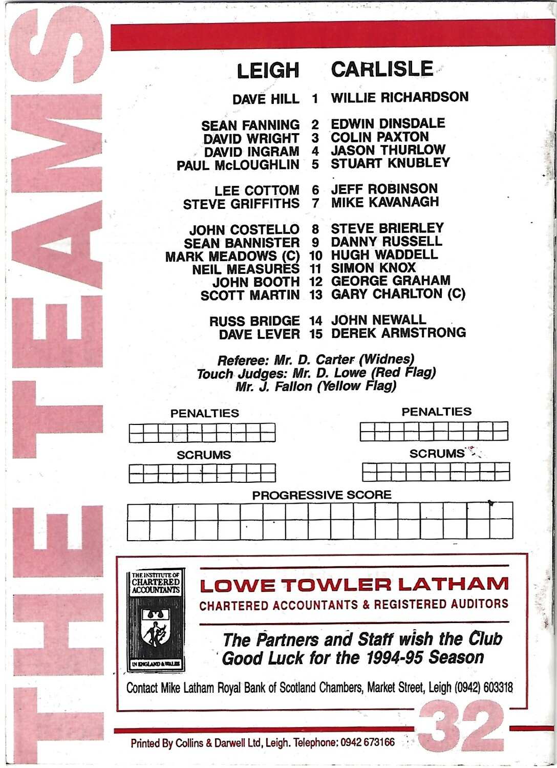 1994/95 Leigh v Carlisle Rugby League Programme