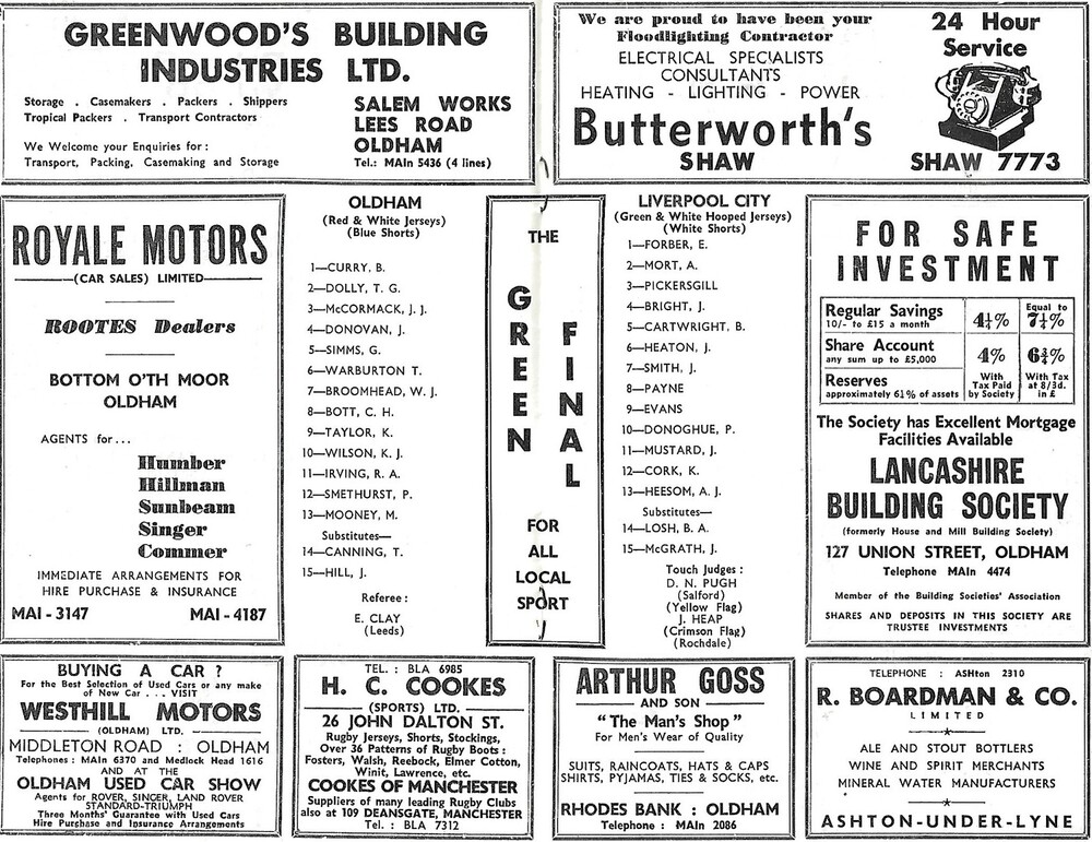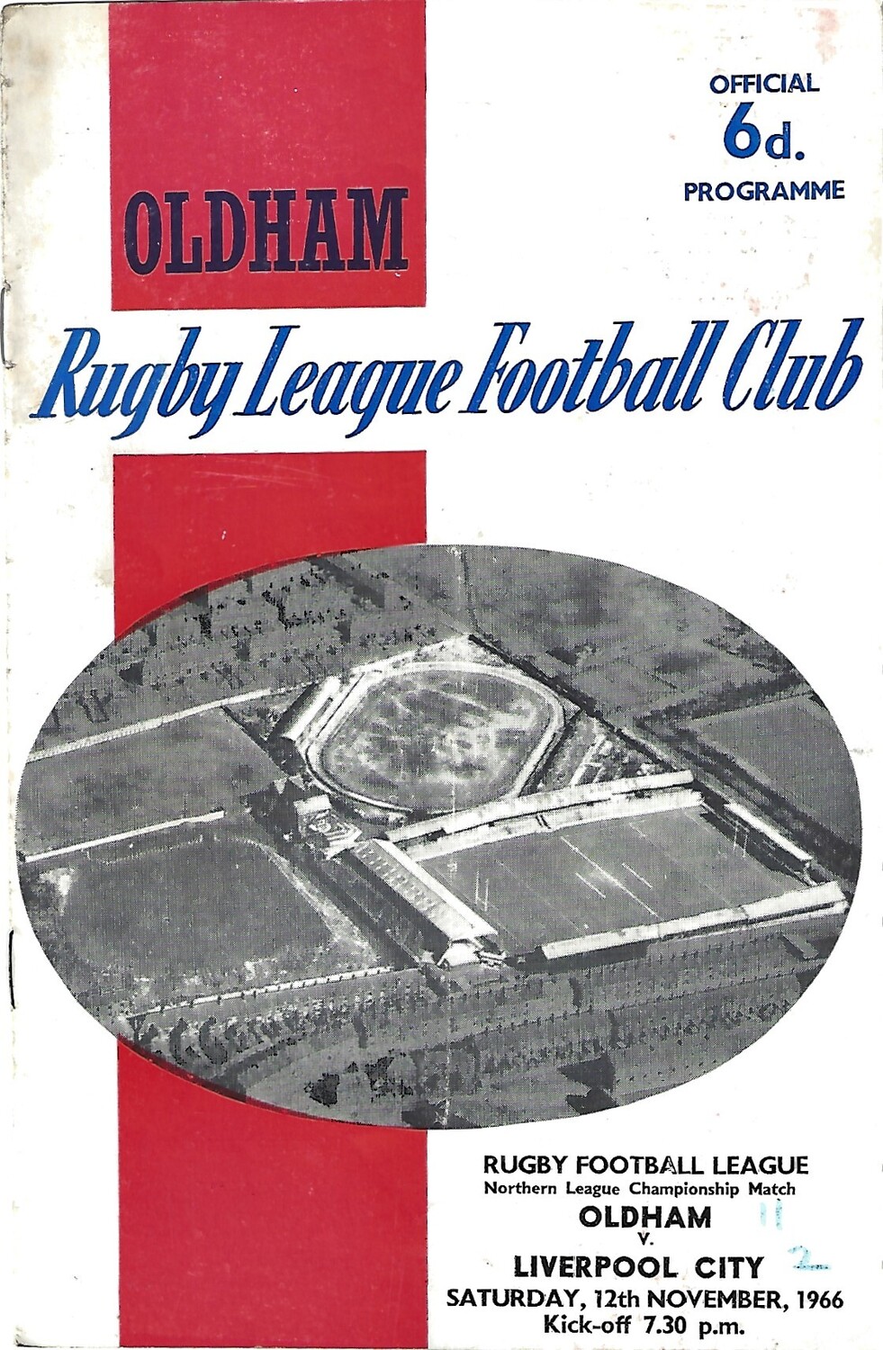 1966/67 Oldham v Liverpool City Rugby League Programme