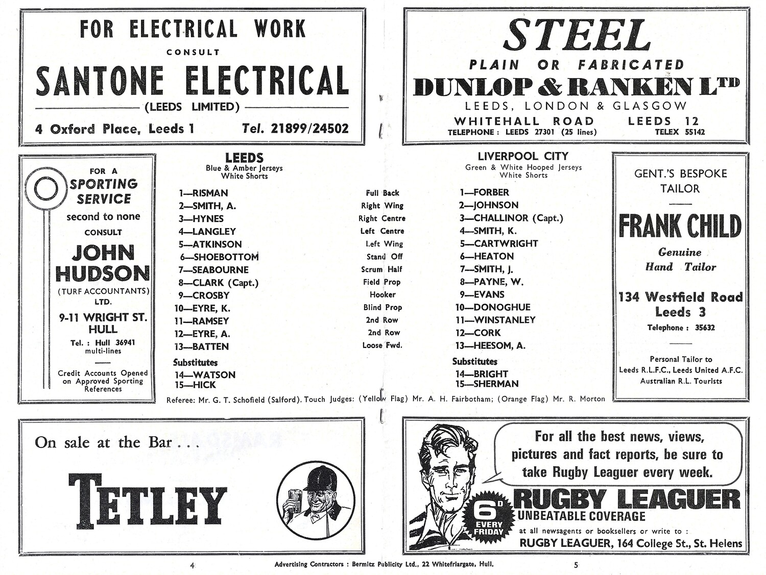 1967/68 Leeds v Liverpool City (03/02/1968) Rugby League Challenge Cup, First Round Rugby League Programme