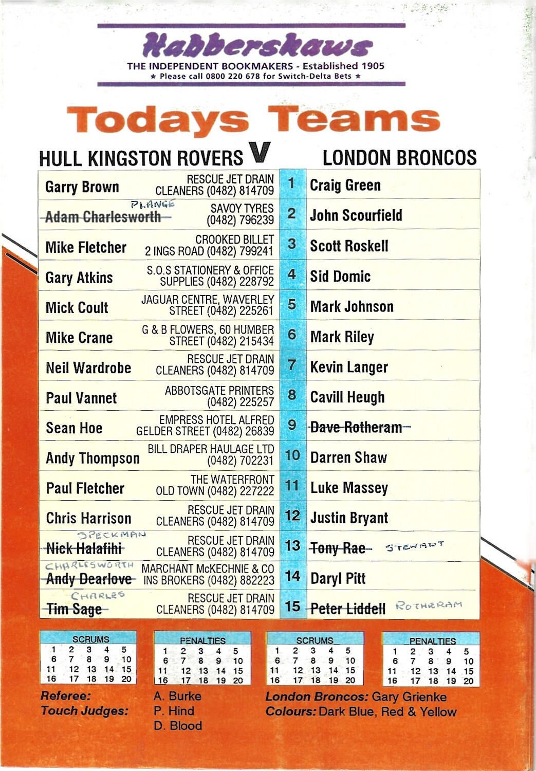 1994/95 Hull Kingston Rovers v London Broncos Rugby League Programme