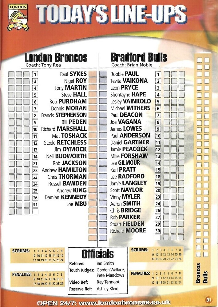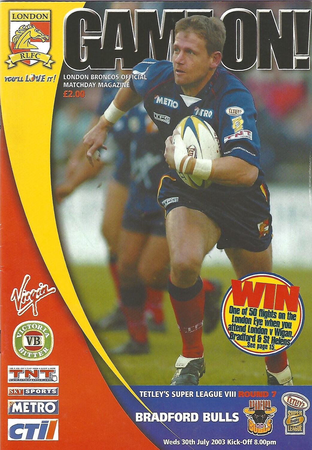 2003 London Broncos v Bradford Bulls Rugby League programme