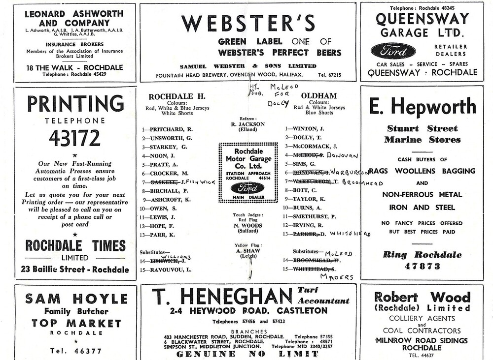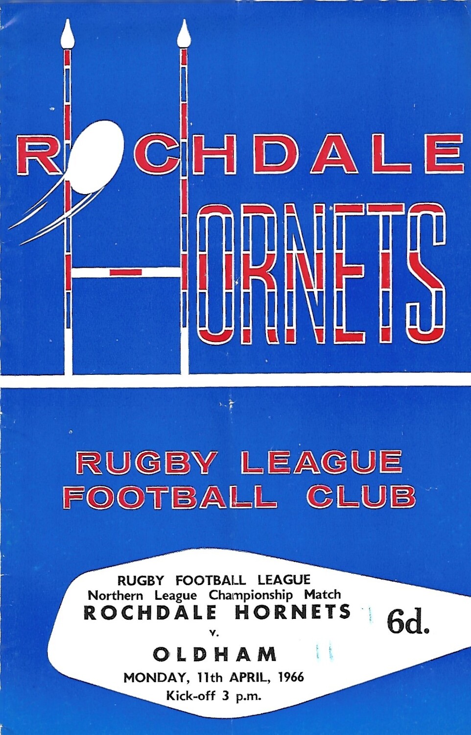 1965/66 Rochdale Hornets v Oldham Rugby League Programme