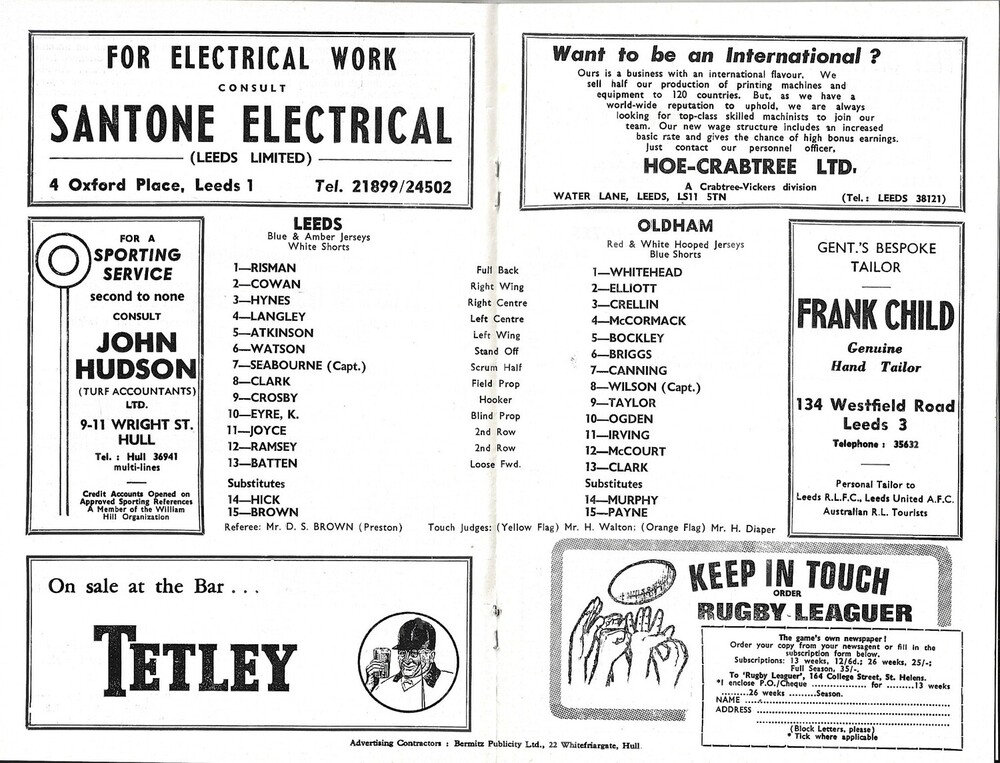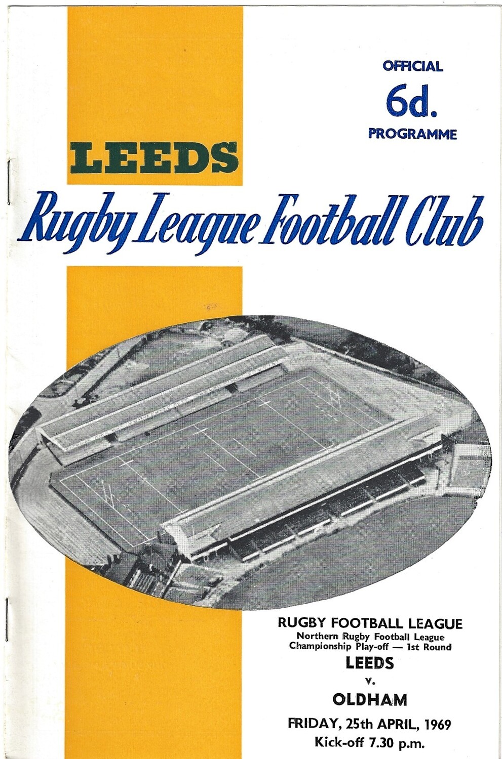 1968/69 Leeds v Oldham (25/04/1969) Championship Play-Off, First Round Rugby League Programme
